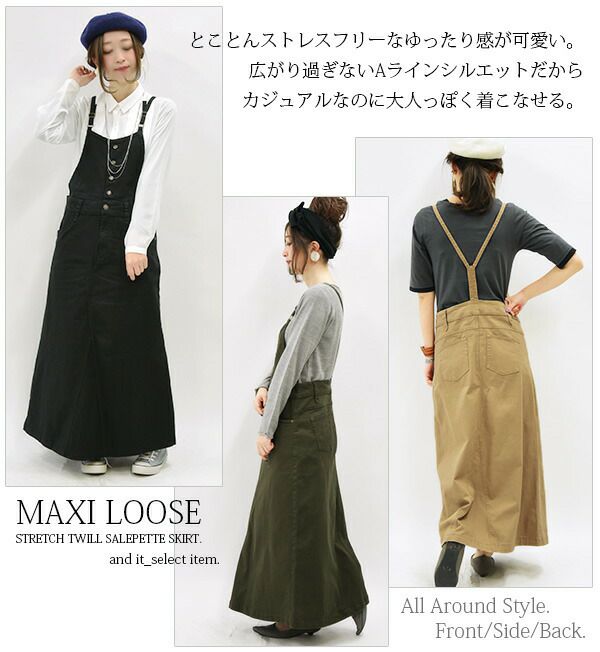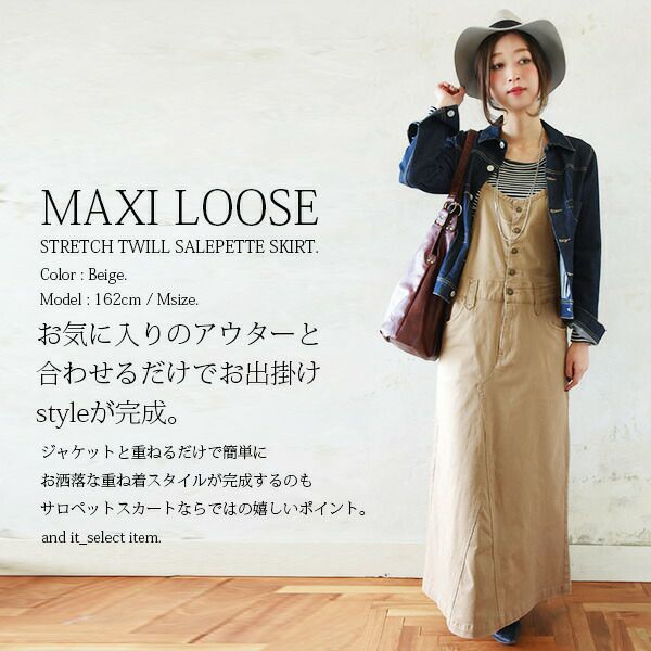 他の画像を見る パッと目を惹く存在感が◎ゆったり長いマキシ丈シルエットが大人っぽい雰囲気に。 マキシ丈ゆるストレッチツイルサロペットスカート 【メール便対応不可】 販売価格 ¥ 8,399 税込 詳細を見る お気に入りに登録する
