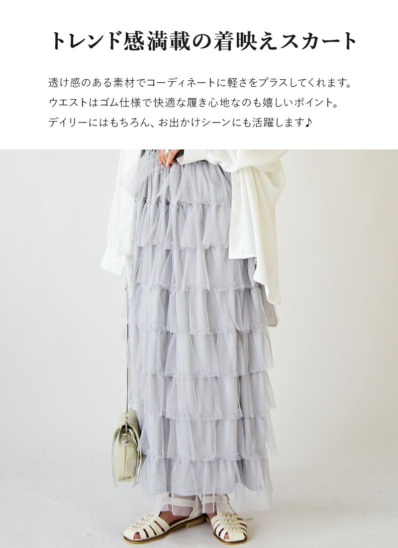 他の画像を見る 穿くだけでトレンド感アップ!ふんわりとしたボリュームと透け感がお洒落な1枚☆ チュールランダムティアードスカート M 【メール便対応可】 販売価格 ¥ 5,799 税込 カートに入れる お気に入りに登録する