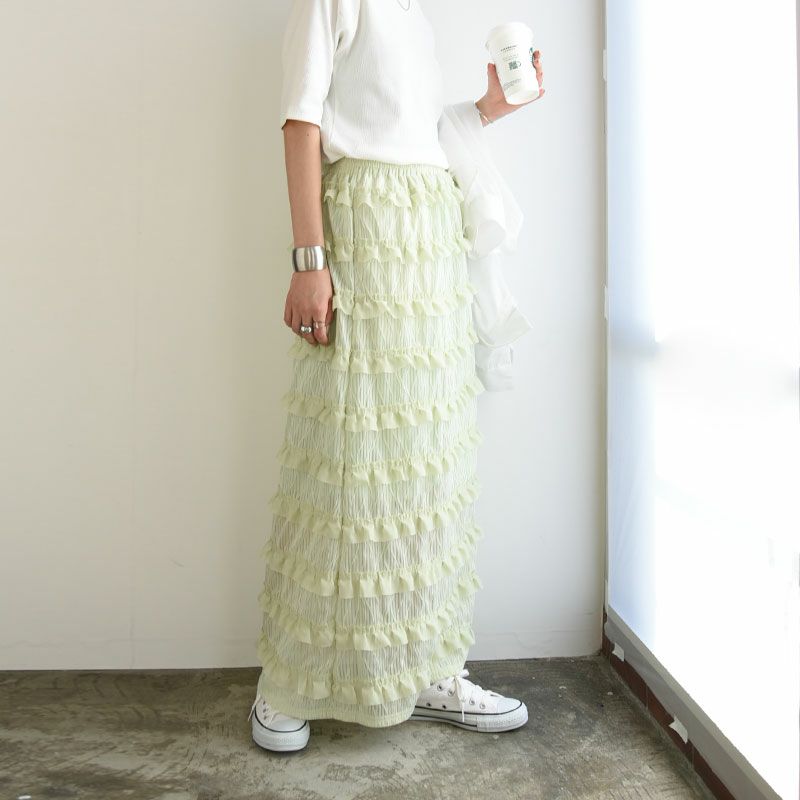 他の画像を見る チュールシアーの素材感が魅力!歩く度に可愛いふんわりギャザーシルエット♪ チュールシアーギャザーフレアスカート M 【メール便対応不可】 販売価格 ¥ 5,199 税込 カートに入れる お気に入りに登録する