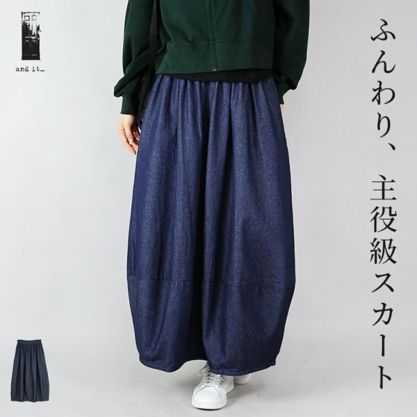 スカート レディース バルーンシルエット ライトデニム ロングスカート ロング丈 綿100% コットン バルーンスカート バルーン ロング ロングスカート ウエストゴム デニムスカート デニム ネイビー 新作 NEW ニュー カジュアル かじゅある ナチュラル なちゅらる 女性 綺麗 綺麗目 綺麗め きれいめ キレイメ キレイめ きれい キレイ 可愛い かわいい カワイイ カッコいい かっこいい 格好良い カッコイイ 大人 オトナ おとな オトナカワイイ おとなかわいい 大人可愛い 大人女子 おとなじょし オトナジョシ お洒落 おしゃれ オシャレ トレンド 旬 とれんど 流行 こなれ感 こなれ 高見え 上質 上品 シンプル ニュアンス ラクチン らくちん 楽ちん 楽 動きやすい ゆったり ゆる ゆったりサイズ ゆるカジ ゆるい ゆるファッション 体型カバー プラスサイズ 大きいサイズ ビッグ ビック big ビックシルエット ビッグシルエット ビックサイズ ビッグサイズ オーバーサイズ オーバー フリーサイズ フリー S M L LL 2L XL 3L XXL LLL 着痩せ 着回し 華奢見せ 華奢見え ベーシック プチプラ ファッション レディースファッション レディファ カジュアルコーデ 大人コーデ オトナコーデ 大人カジュアルコーデ きれいめコーデ きれいめカジュアルコーデ オフィスカジュアルコーデ オフィスカジュアル オフィス テレワーク リモートワーク リモート オンライン飲み会 飲み会 打ち上げ ご飯会 ランチ おうち時間 お家時間 デート お出かけ フェス リゾート ビーチ 海 旅行 飛行機 パーティー パーティ 韓国ファッション 韓国コーデ 韓国風 韓国 母の日 母のひ プレゼント ギフト 贈り物 クリスマス 誕生日 春 夏 秋 冬 春夏 秋冬 andit_ and it_ andit ANDIT_ ANDIT あんどいっと アンドイット 20 30 40 50 60 20代 30代 40代 50代 60代