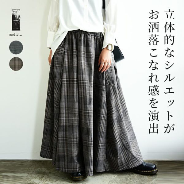 ボトムス スカート レディース ネルチェック チェック チェックスカート チェック柄 ロング丈 ロングスカート 起毛 立体 ポケット ボリューム お洒落 大人可愛い こなれ感 ウエストゴム ゴム 楽ちん カジュアル 体型カバー ヒップカバー ゆったり ネイビーベージュ ブルー ネイビー ブラック スモークグレー ブラウン グレー 新色 秋 冬 AW, M-L M L andit_ and it_ andit ANDIT_ ANDIT あんどいっと アンドイット AW 新作 NEW カジュアル ナチュラル きれいめ 大人可愛い 大人女子 お洒落 トレンド シンプル ニュアンス プチプラ ファッション レディースファッション 20 30 40 50 20代 30代 40代 50代