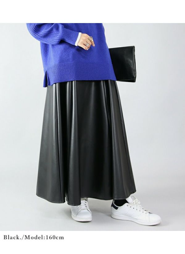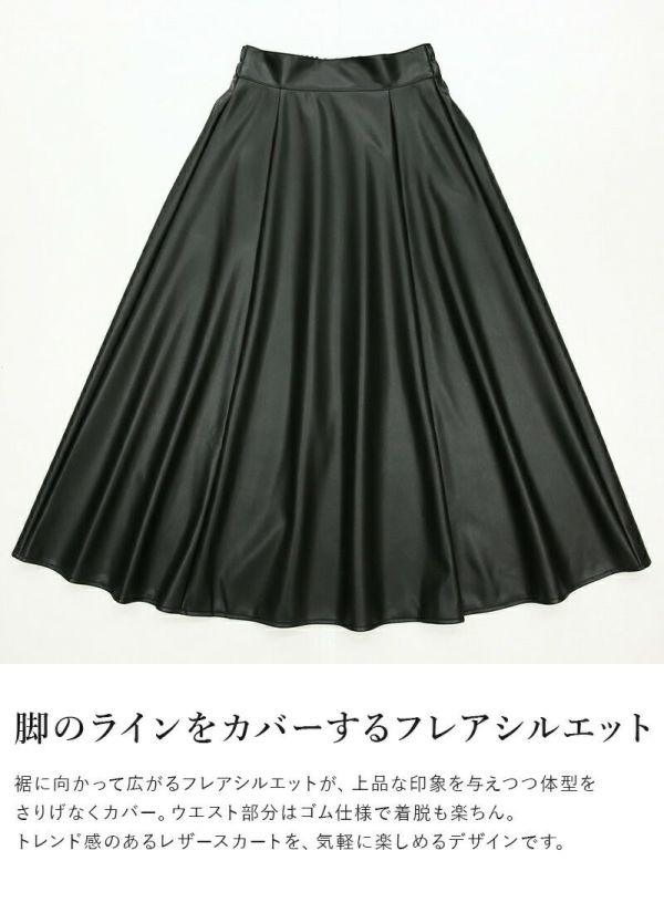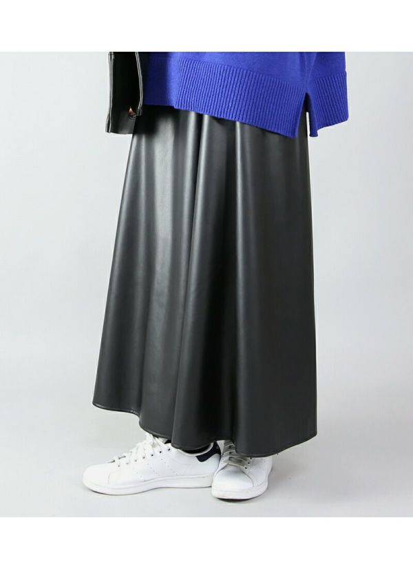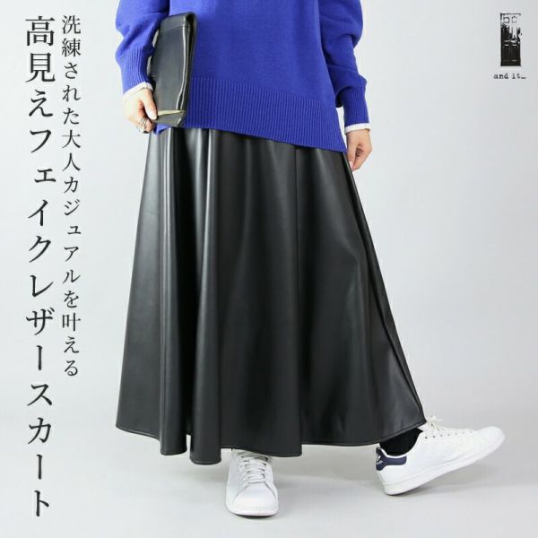 スカート レディース フェイクレザー 合皮 フレアスカート ボトムス ロング ロングスカート Aライン 上品 綺麗め 高見え シンプル 無地 ブラック 黒 秋 冬 24aw AW, M エム andit_ and it_ andit ANDIT_ ANDIT あんどいっと アンドイット 新作 NEW カジュアル ナチュラル きれいめ 大人可愛い 大人女子 お洒落 トレンド シンプル ニュアンス プチプラ ファッション レディースファッション 20 30 40 50 20代 30代 40代 50代