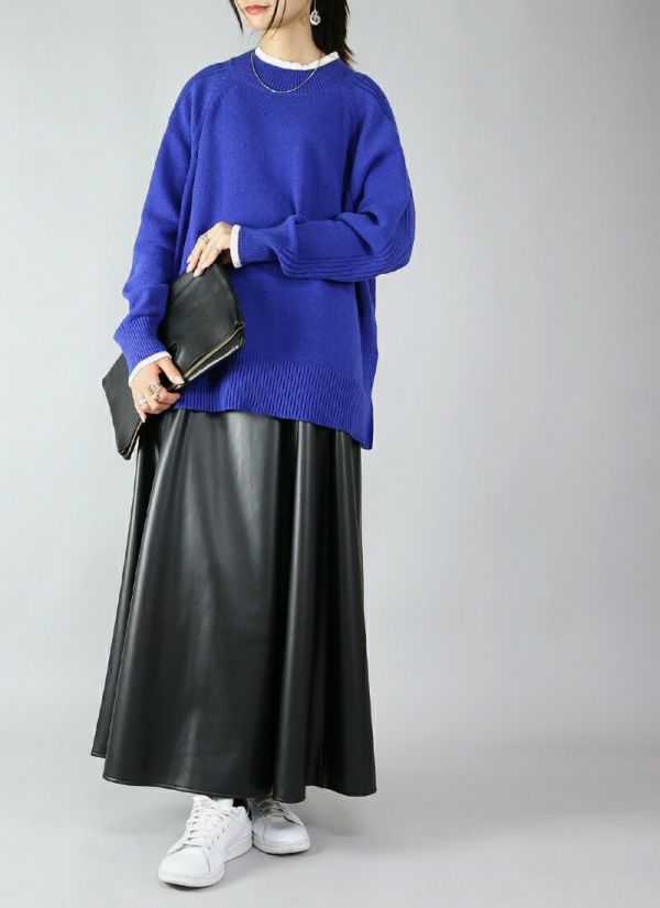 穿くだけで高見え効果抜群◎シンプルで上品な大人のフェイクレザースカート。