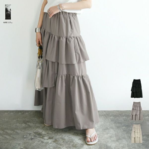 ボトムス スカート レディース ブロード ランダム ティアード ボリューム ふんわり Aライン 大人可愛い 上品 お洒落 体型カバー ウエストゴム 楽ちん エクリュ グレー ブラック 黒 裏地付き M Mサイズ えむ エム 春 夏 春服 夏服 andit_ and it_ andit ANDIT_ ANDIT あんどいっと アンドイット SS 新作 NEW カジュアル ナチュラル きれいめ 大人可愛い 大人女子 お洒落 トレンド シンプル ニュアンス M Mサイズ ゆったり 楽ちん ラフ 体型カバー ぽっちゃり プチプラ ファッション レディースファッション ママ服 20 30 40 50 20代 30代 40代 50代