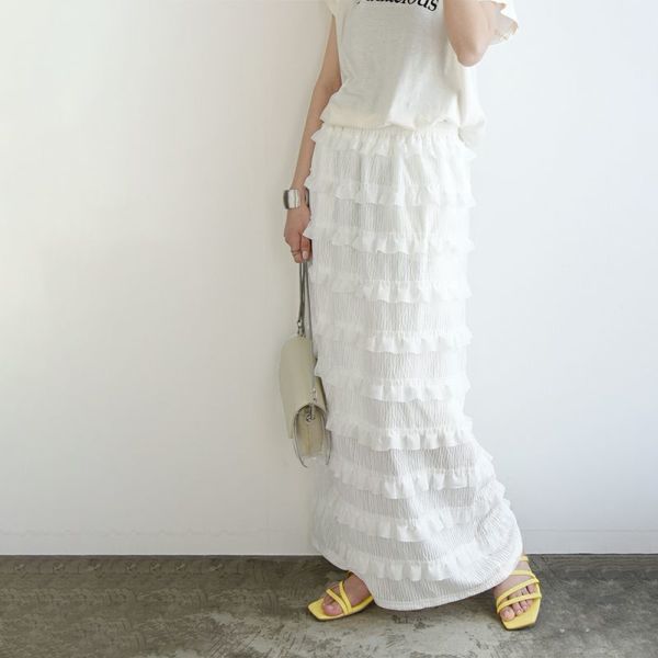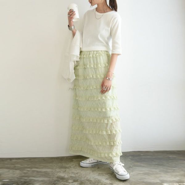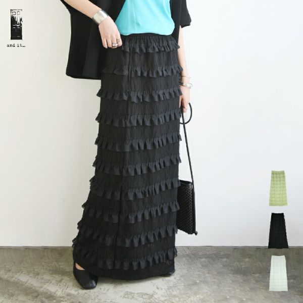 ボトムス スカート レディース フリル ジャガード カットソー ナロースカート ふんわり トレンド 着回し 上品 華やか 透け感 涼感 オフホワイト ペールグリーン ブラック 白 黒 M Mサイズ えむ エム 春 夏 春服 夏服 andit_ and it_ andit ANDIT_ ANDIT あんどいっと アンドイット SS 新作 NEW カジュアル ナチュラル きれいめ 大人可愛い 大人女子 お洒落 トレンド シンプル ニュアンス M Mサイズ ゆったり 楽ちん ラフ 体型カバー ぽっちゃり プチプラ ファッション レディースファッション ママ服 20 30 40 50 20代 30代 40代 50代