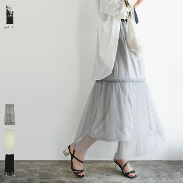 ボトムス スカート レディース チュール シアー ギャザー フレア フレアスカート 透け感 涼感 トレンド ふんわり ボリューム インナー付き 着回し ホワイト グレー ブラック 白 黒 M Mサイズ 春 夏 春服 夏服 andit_ and it_ andit ANDIT_ ANDIT あんどいっと アンドイット SS 新作 NEW カジュアル ナチュラル きれいめ 大人可愛い 大人女子 お洒落 トレンド シンプル ニュアンス ゆったり 楽ちん ラフ 体型カバー ぽっちゃり プチプラ ファッション レディースファッション ママ服 20 30 40 50 20代 30代 40代 50代