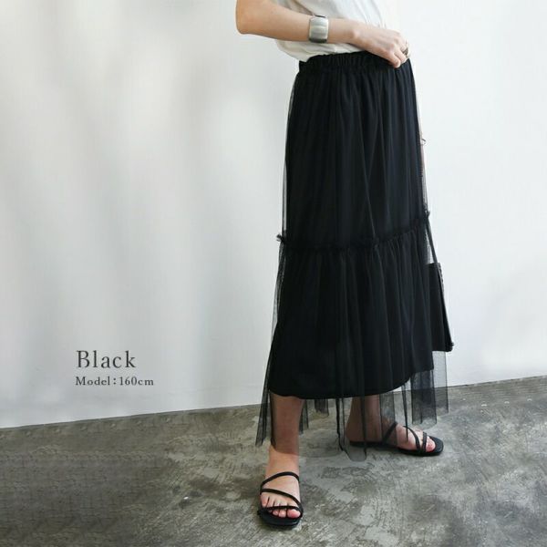 チュールシアーの素材感が魅力!歩く度に可愛いふんわりギャザーシルエット♪
