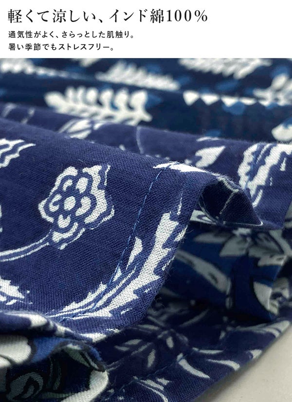 ふんわり軽やかなインド綿が涼感漂う。心躍る柄デザインで華やかな印象に♪