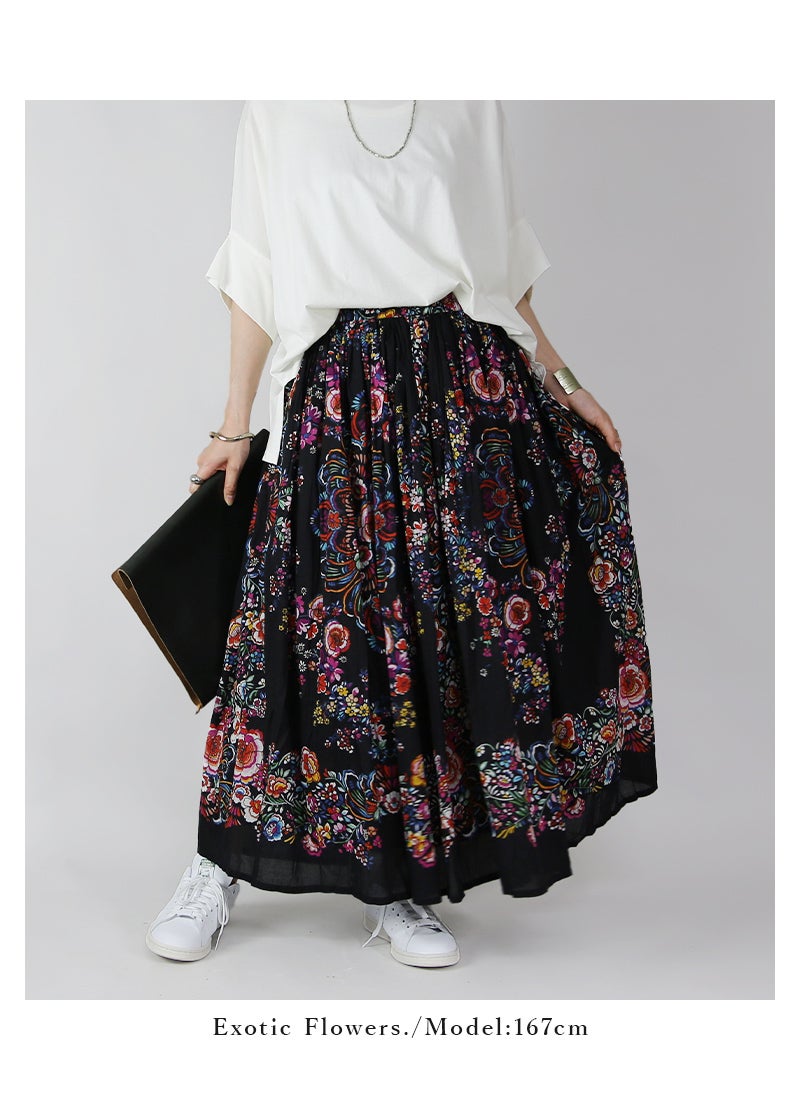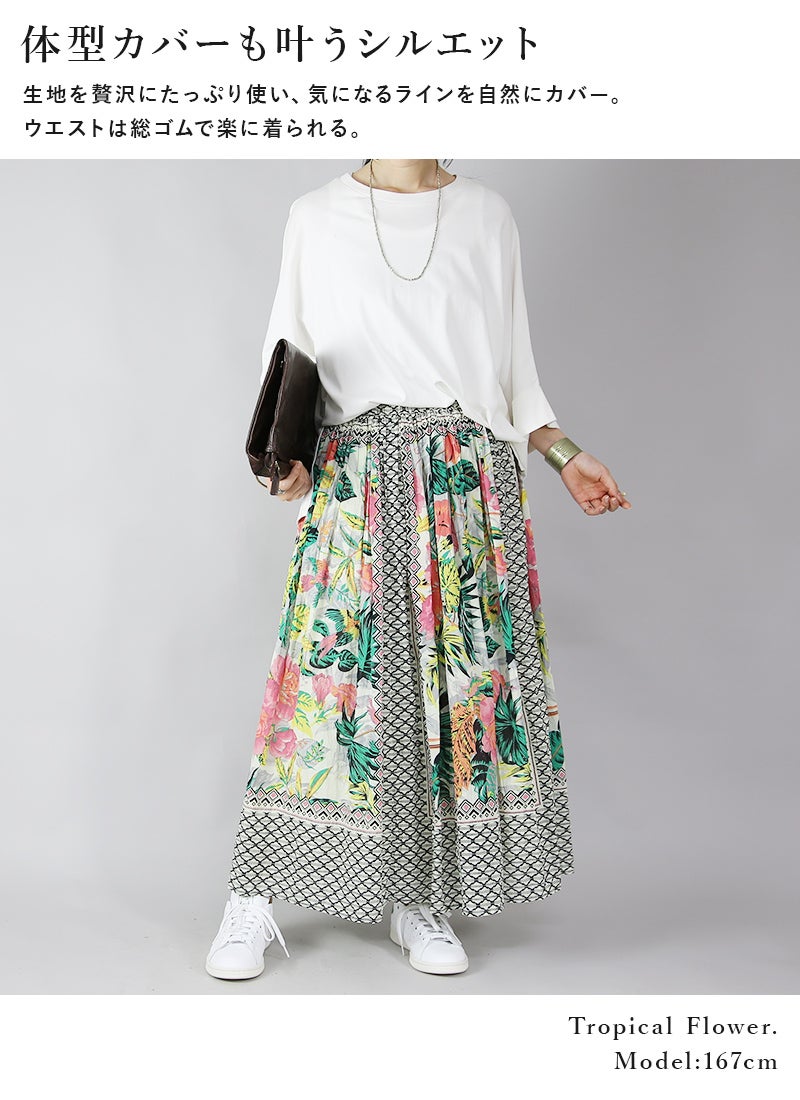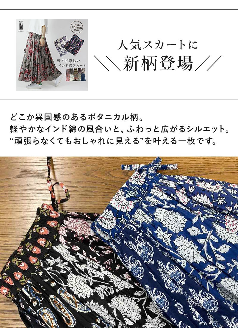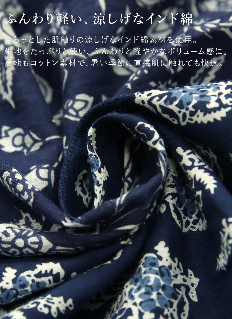 ふんわり軽やかなインド綿が涼感漂う。心躍る柄デザインで華やかな印象に♪