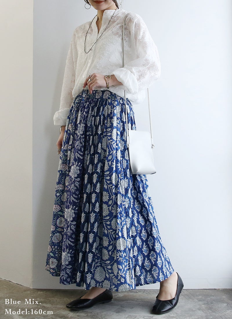 ボイルロング丈ギャザースカート M-L 【メール便対応不可】