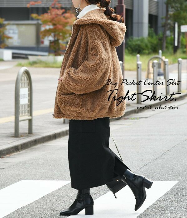 ラメ感が上品なツイード生地で大人な印象に。ラインを隠しつつ大人見えするタイトスカート♪