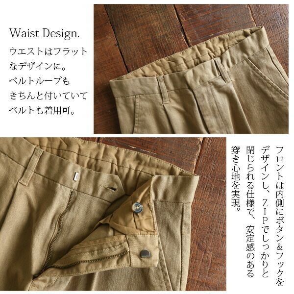 私は[Mサイズ]を着用しました。優れたストレッチ性で、穿き心地がとにかく快適です! ゆとりがあるウエストサイズでしたが、腰骨辺りで止まってくれました。腰で穿いてルーズなスタイリングもお勧め!着丈はウエストで穿いてくるぶしが半分隠れるくらい。裾のカットオフでデザイン性UP♪シーズンレスで活躍してくれる1本です!