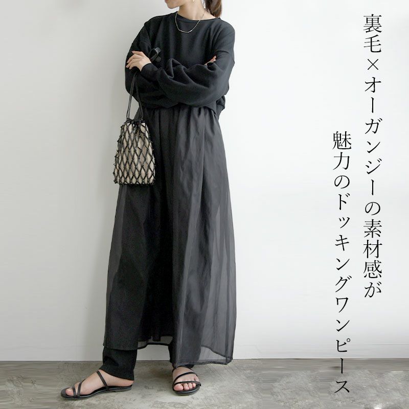 他の画像を見る 透け感が上品で大人見え!絶妙なバランスが可愛いドッキングワンピース♪ 裏毛×オーガンジードッキングワンピース M 【メール便対応不可】 販売価格 ¥ 6,199 税込 カートに入れる お気に入りに登録する