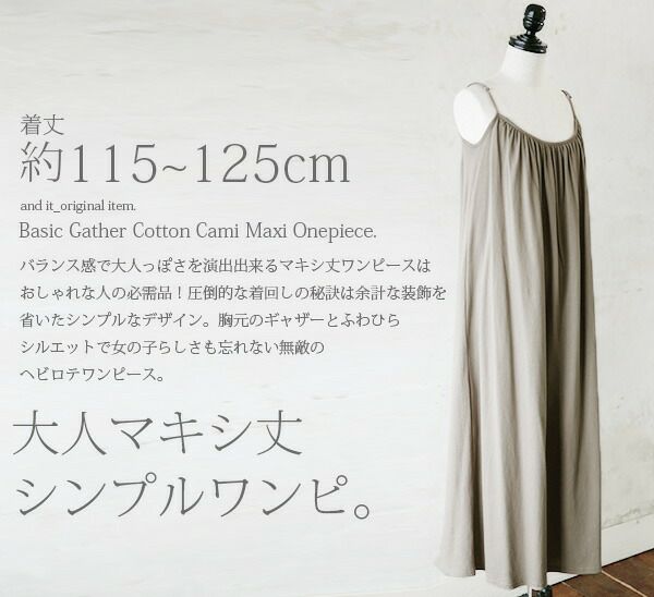 ベーシックギャザーコットンキャミマキシワンピース 【メール便対応可】