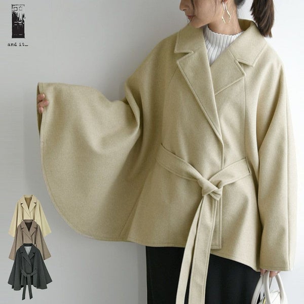 コート ポンチョ レディース 秋冬 ポンチョコート アウター 長袖 あったか お洒落 個性的 上品 きれいめ リボン ウエストリボン リボン付き ベルト ベルト付き 杢ベージュ 杢ブラウン 杢チャコール ベージュ ブラウン チャコール 羽織り 羽織 秋コート 冬コート andit_ and it_ andit ANDIT_ ANDIT あんどいっと アンドイット AW 新作 NEW カジュアル ナチュラル きれいめ 大人可愛い 大人女子 お洒落 トレンド シンプル ニュアンス M Mサイズ ゆったり 楽ちん ラフ 体型カバー ぽっちゃり プチプラ ファッション レディースファッション ママ服 20 30 40 50 20代 30代 40代 50代