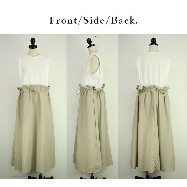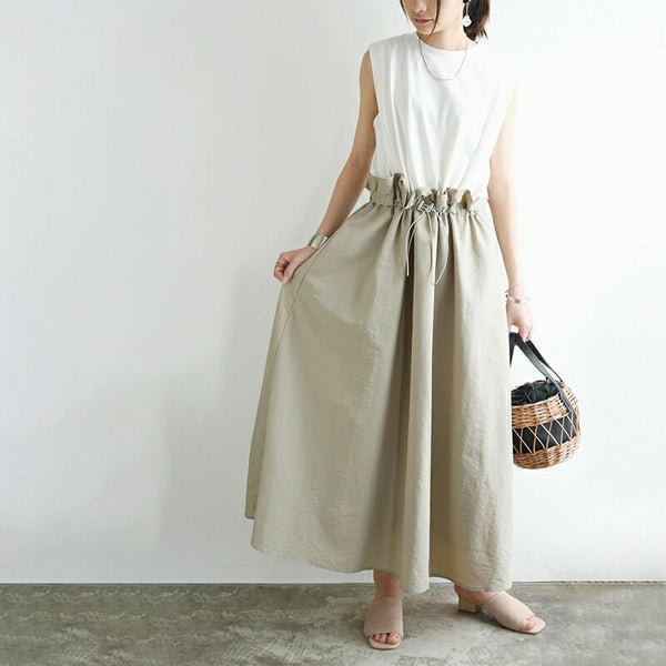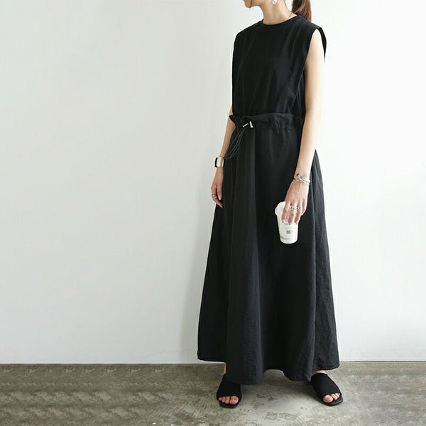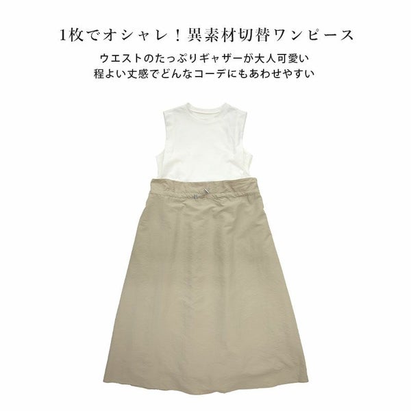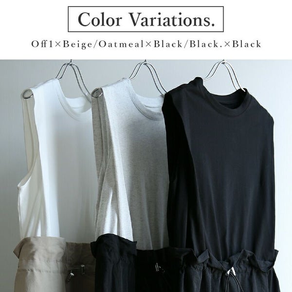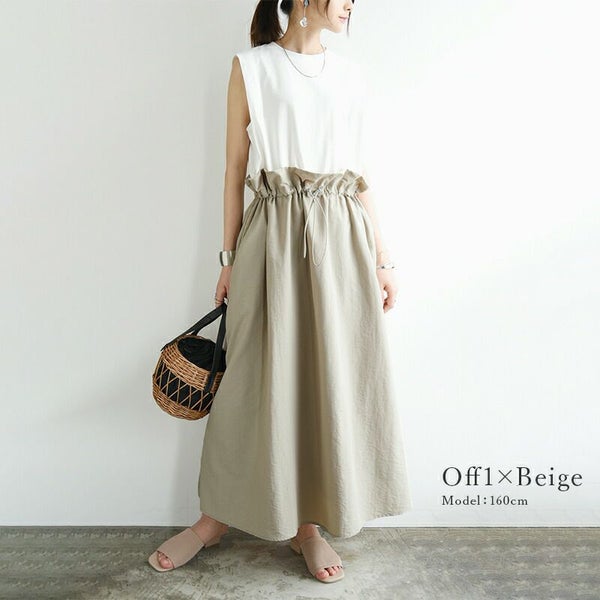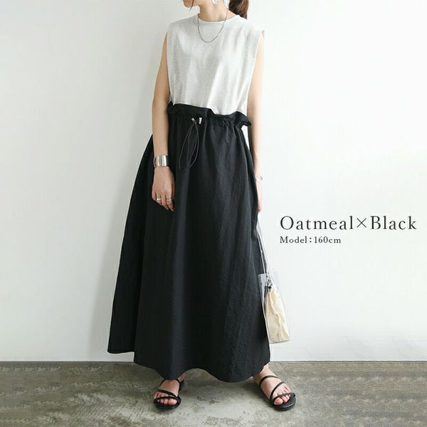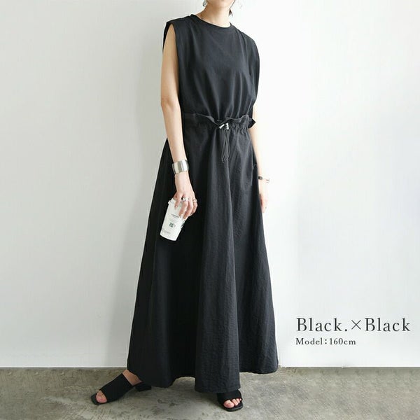 ワンピース レディース 春 夏 異素材 ドッキング ロングワンピース ロング丈 ロングワンピ ノースリーブ ドローコード カットソー 布帛 リラックス デイリー お出かけ ベージュ ブラック オートミール 黒 白 M andit_ and it_ andit ANDIT_ ANDIT あんどいっと アンドイット SS 新作 NEW カジュアル ナチュラル きれいめ 大人可愛い 大人女子 お洒落 トレンド シンプル ニュアンス ゆったり 楽ちん ラフ 体型カバー ぽっちゃり プチプラ ファッション レディースファッション ママ服 20 30 40 50 20代 30代 40代 50代