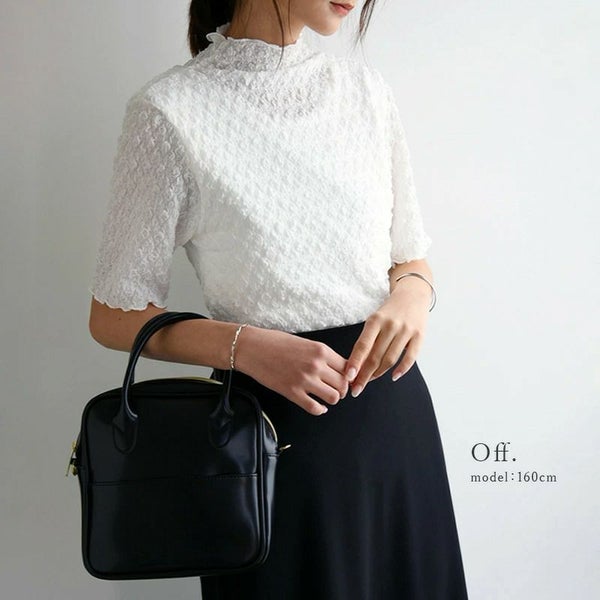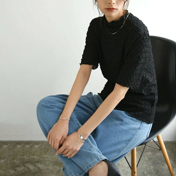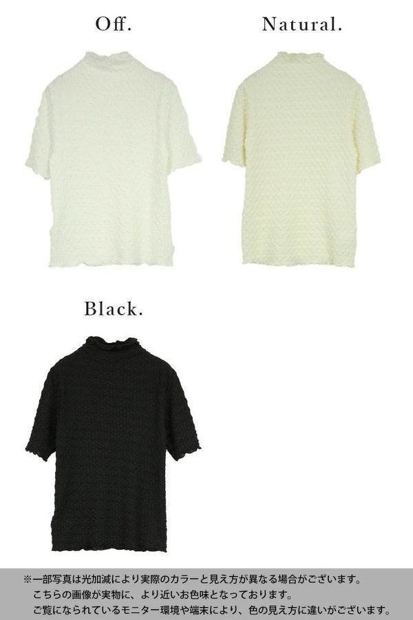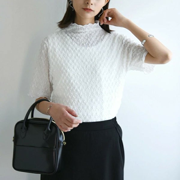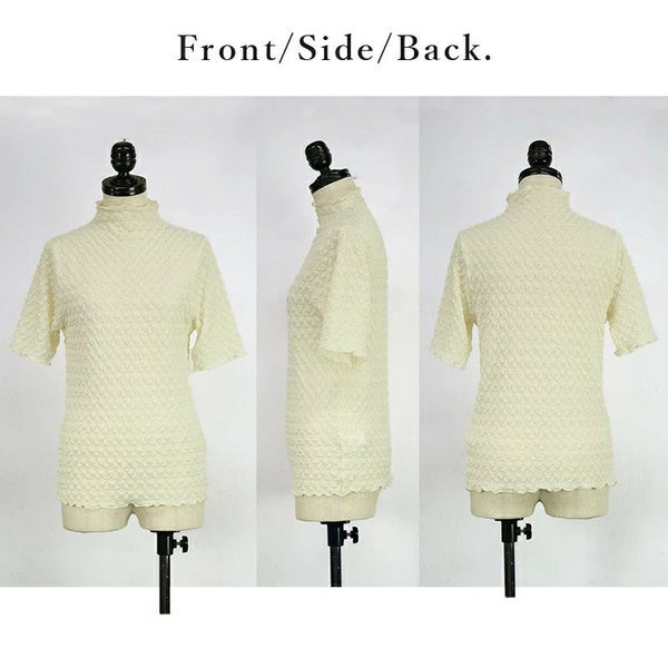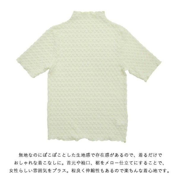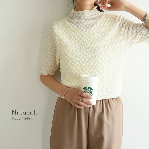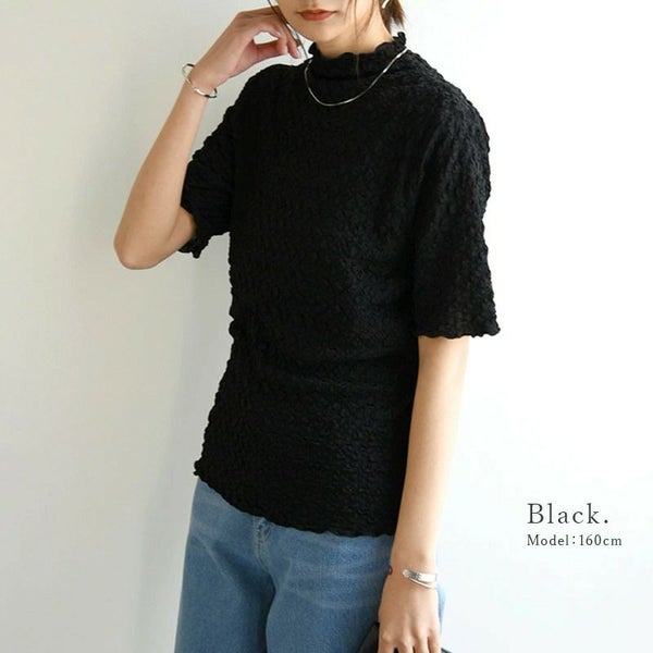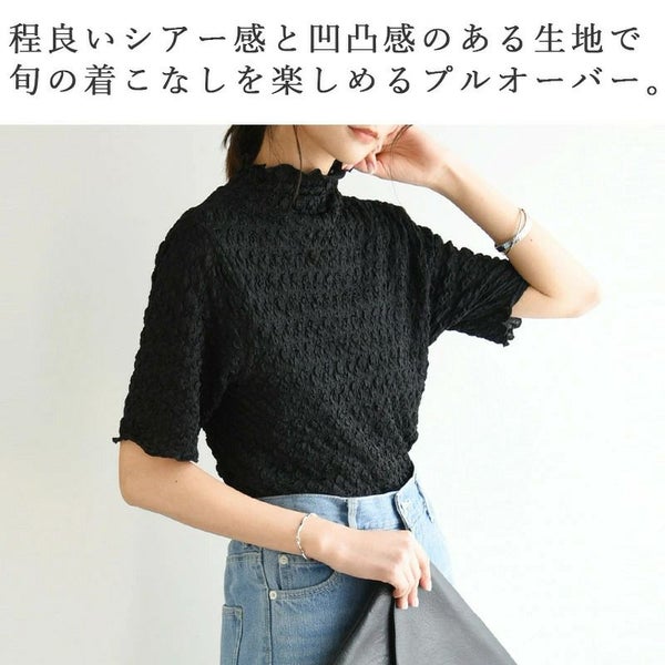 トップス レディース 春夏 ボトルネック 半袖 プルオーバー カットソー シアー 透け感 お洒落 大人可愛い カジュアル 凹凸 ポップコーン 立体感 メロウ ラフ 楽ちん シンプル 五分袖 5分袖 二の腕カバー オフ ナチュラル ブラック 白 黒 M Mサイズ エム えむ andit_ and it_ andit ANDIT_ ANDIT あんどいっと アンドイット SS 新作 NEW カジュアル ナチュラル きれいめ 大人可愛い 大人女子 お洒落 トレンド シンプル ニュアンス ゆったり 楽ちん ラフ 体型カバー ぽっちゃり プチプラ ファッション レディースファッション ママ服 20 30 40 50 20代 30代 40代 50代