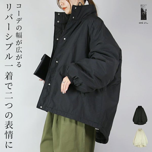 コート レディース リバーシブル スタンドカラー モンスターコート アウター 長袖 あったか 暖かい 防寒 オーバーサイズ ワイド ゆったり 楽ちん トレンド 大人可愛い お洒落 シンプル 無地 シルエットチェンジ アイボリー ブラック 白 黒 秋 冬 24aw AW, M エム andit_ and it_ andit ANDIT_ ANDIT あんどいっと アンドイット 新作 NEW カジュアル ナチュラル きれいめ 大人可愛い 大人女子 お洒落 トレンド シンプル ニュアンス プチプラ ファッション レディースファッション 20 30 40 50 20代 30代 40代 50代