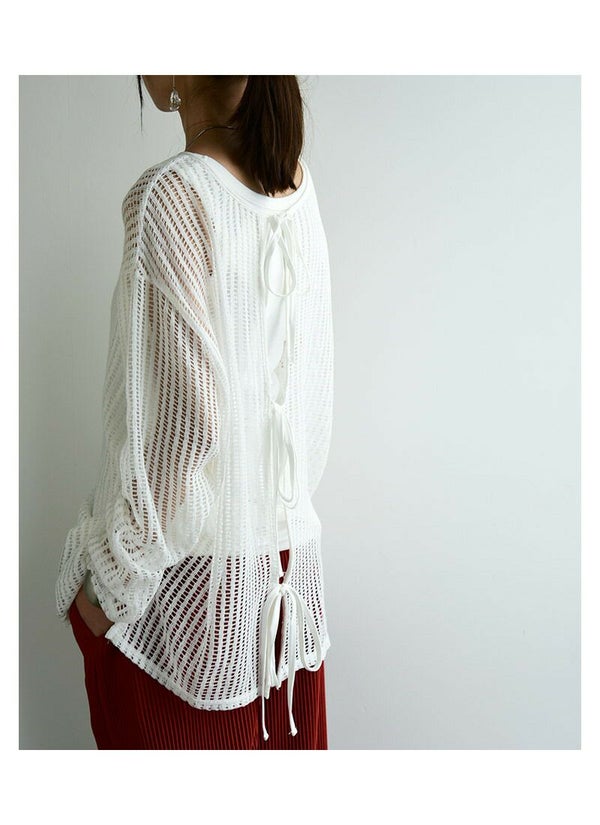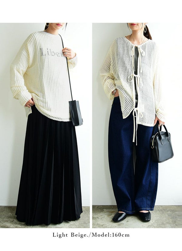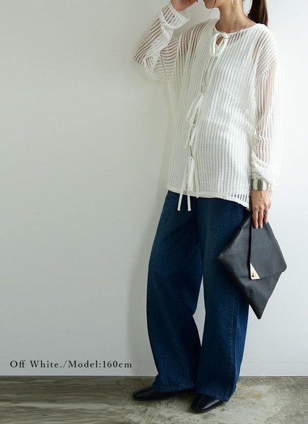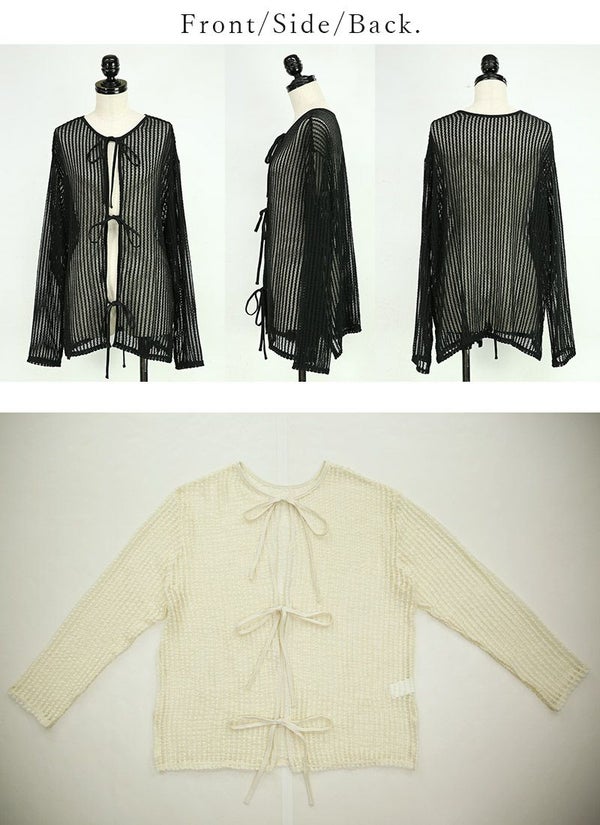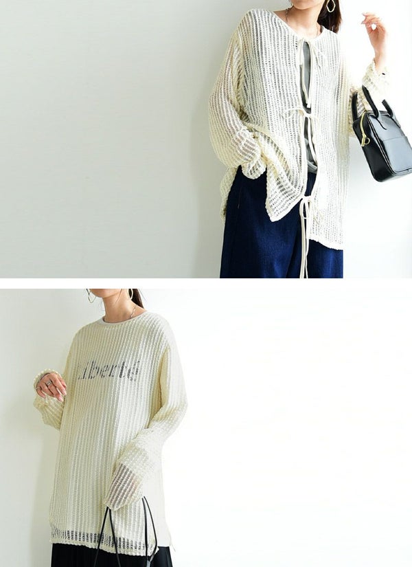 トップス レディース カーディガン 2way ストライプ メッシュ リボン 夏 秋 前後2way 透け感 肌見せ 抜け感 大人可愛い トレンド カジュアル 編み 重ね着 レイヤード 羽織り カーデ 長袖 オフホワイト ライトベージュ ブラック 黒 白 andit_ and it_ andit ANDIT_ ANDIT あんどいっと アンドイット AW 新作 NEW カジュアル ナチュラル きれいめ 大人可愛い 大人女子 お洒落 トレンド シンプル ニュアンス M Mサイズ 夏服 秋服 ゆったり 楽ちん ラフ 体型カバー ぽっちゃり プチプラ ファッション レディースファッション ママ服 20 30 40 50 20代 30代 40代 50代