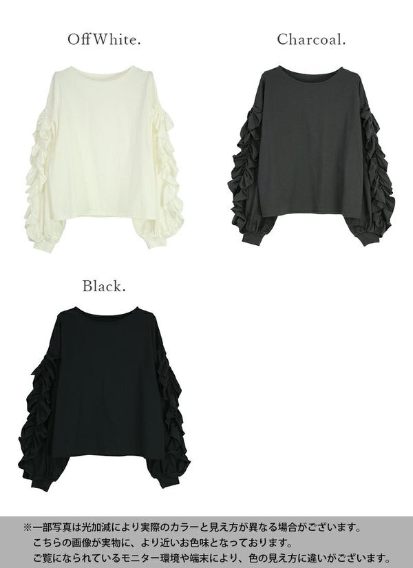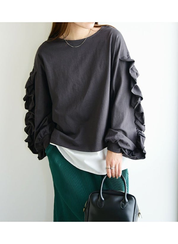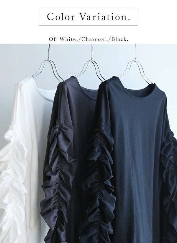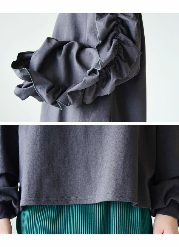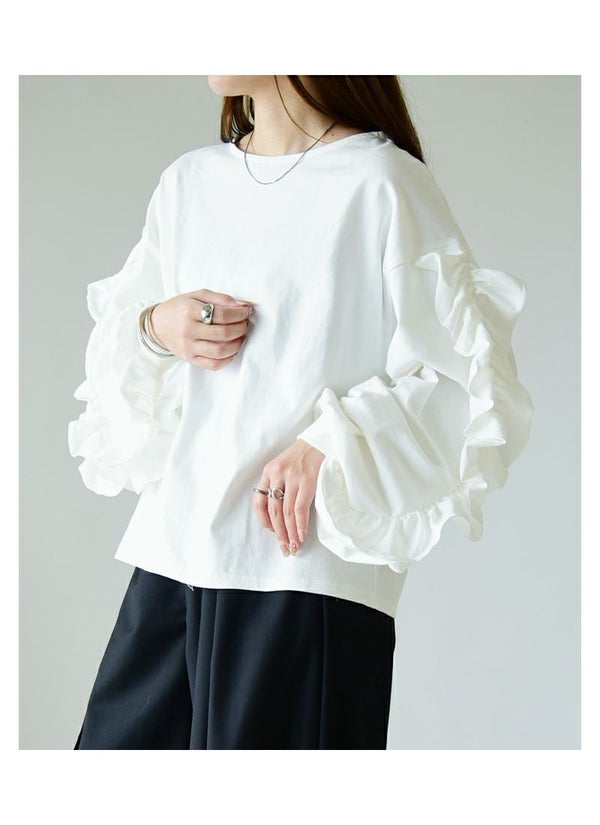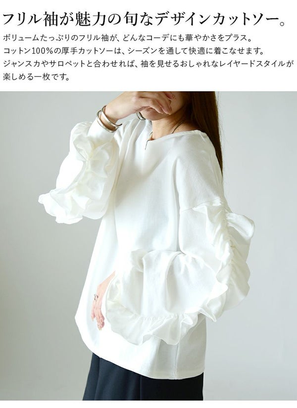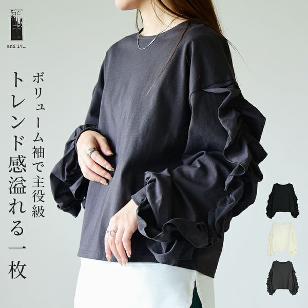 カットソー レディース ボリューム フリル スリーブ コットン 綿 100% トップス 長袖 コットン 優しい ボリューム袖 ボリュームスリーブ 華やか 重ね着 レイヤード ゆったり 楽ちん ラフ 上品 きれいめ 大人可愛い お洒落 オフホワイト チャコール ブラック 白 黒 秋 冬 24aw AW, M エム andit_ and it_ andit ANDIT_ ANDIT あんどいっと アンドイット NEW カジュアル ナチュラル きれいめ 大人可愛い 大人女子 お洒落 おしゃれ トレンド シンプル ニュアンス ゆったり 楽ちん ラフ 体型カバー ぽっちゃり プチプラ ファッション レディースファッション ママ服 20 30 40 50 20代 30代 40代 50代