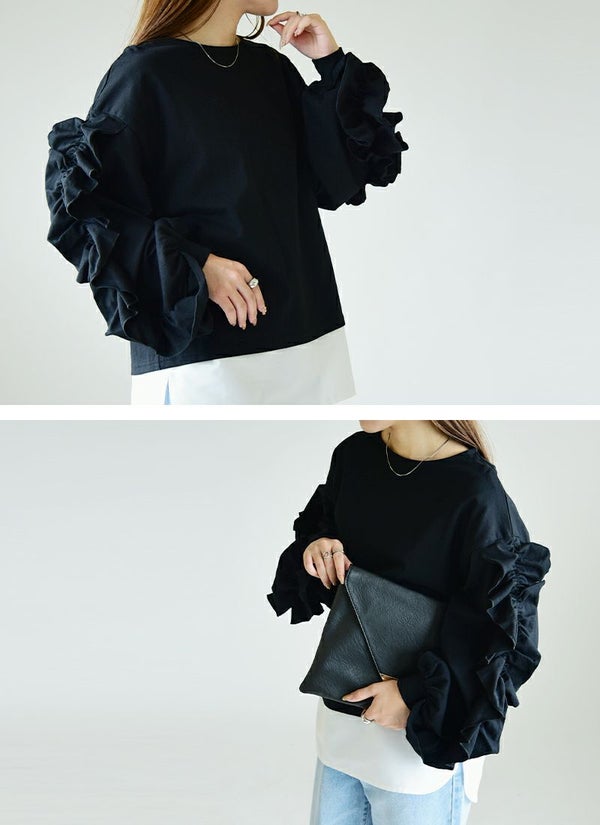 たっぷりフリルで華やかに♪シンプルで合わせやすく女性らしさを取り入れてくれる1枚。