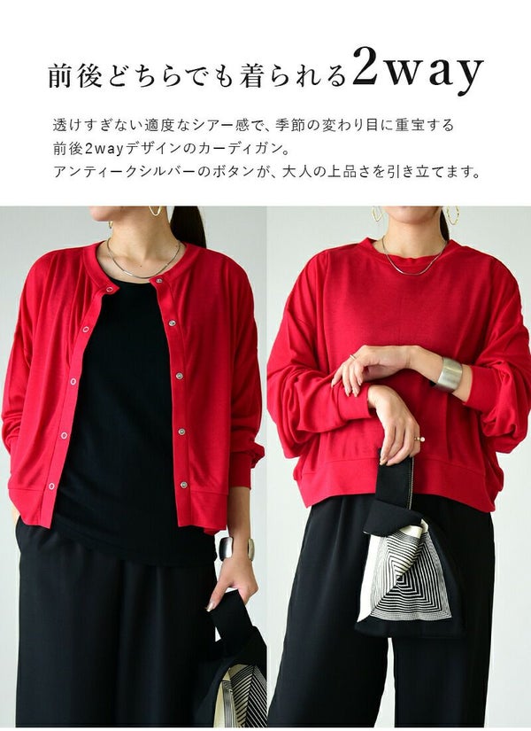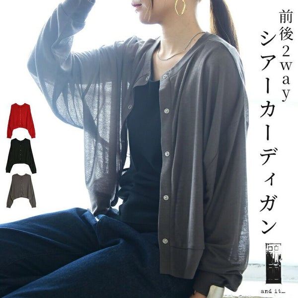 トップス カーディガン レディース シアー 2way カーデ ショート丈 ショートカーデ ショートカーディガン 羽織り 薄手 長袖 透け感 軽量 軽い ゆったり 楽ちん シンプル ボタン 柔らかい ふんわり 冷房対策 季節の変わりめ 春 夏 秋 24aw SS, AW, レッド チャコール ブラック 赤 黒 M andit_ and it_ andit ANDIT_ ANDIT あんどいっと アンドイット 新作 NEW カジュアル ナチュラル きれいめ 大人可愛い 大人女子 お洒落 トレンド シンプル ニュアンス プチプラ ファッション レディースファッション 20 30 40 50 20代 30代 40代 50代
