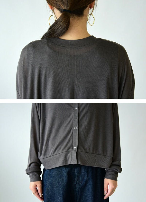 程良い透け感で上品な印象に。前後2wayで楽しめて季節の変わりめにもぴったりなショートカーデ♪