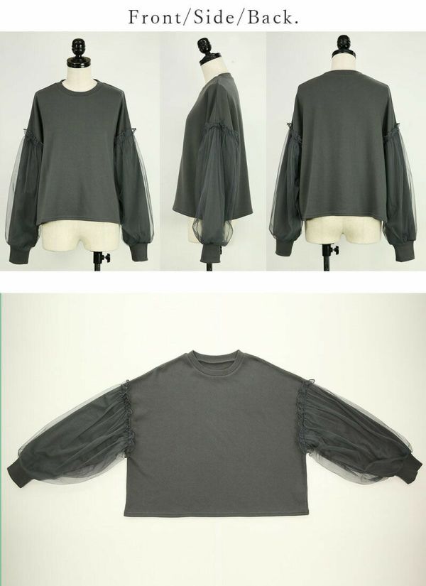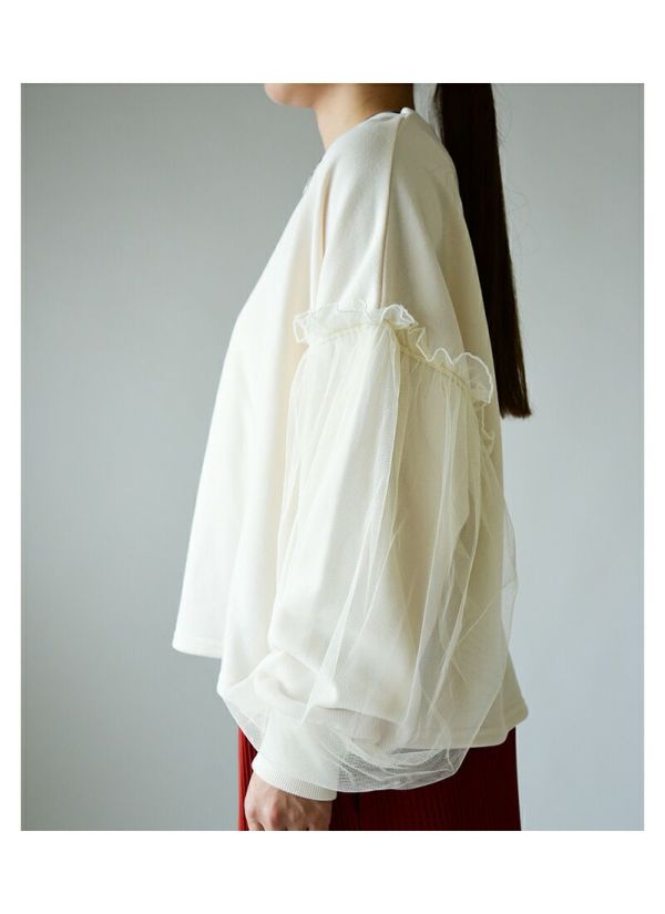 プルオーバー レディース チュール ドッキング 異素材 スウェット トップス 長袖 透け感 シアー ふんわり ボリューム袖 ボリュームスリーブ 大人可愛い お洒落 トレンド アイボリー チャコール ブラック 白 黒 秋 冬 24aw AW, M エム andit_ and it_ andit ANDIT_ ANDIT あんどいっと アンドイット NEW カジュアル ナチュラル きれいめ 大人可愛い 大人女子 お洒落 おしゃれ トレンド シンプル ニュアンス ゆったり 楽ちん ラフ 体型カバー ぽっちゃり プチプラ ファッション レディースファッション ママ服 20 30 40 50 20代 30代 40代 50代