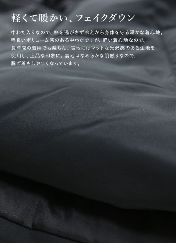 軽くて暖かいのにすっきり見え!大人の毎日にちょうどいいフェイクダウンコート♪