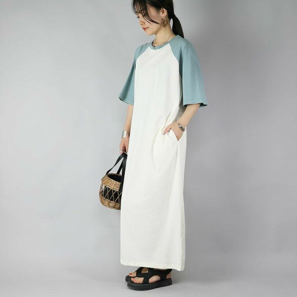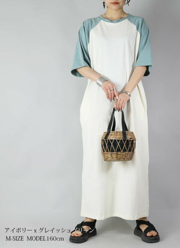 このワンピースは、バックプリントが特徴のラグランデザインで、カジュアルながらも大人の可愛らしさを演出します。五分袖で二の腕をカバーし、リラックスした着心地を提供します。綿100%の素材は肌に優しく、春夏の季節にぴったりです。ロング丈のシルエットは、ラフな日常使いからお出掛けまで幅広く活躍します。2色展開で、どんなシーンにも合わせやすい一着です。