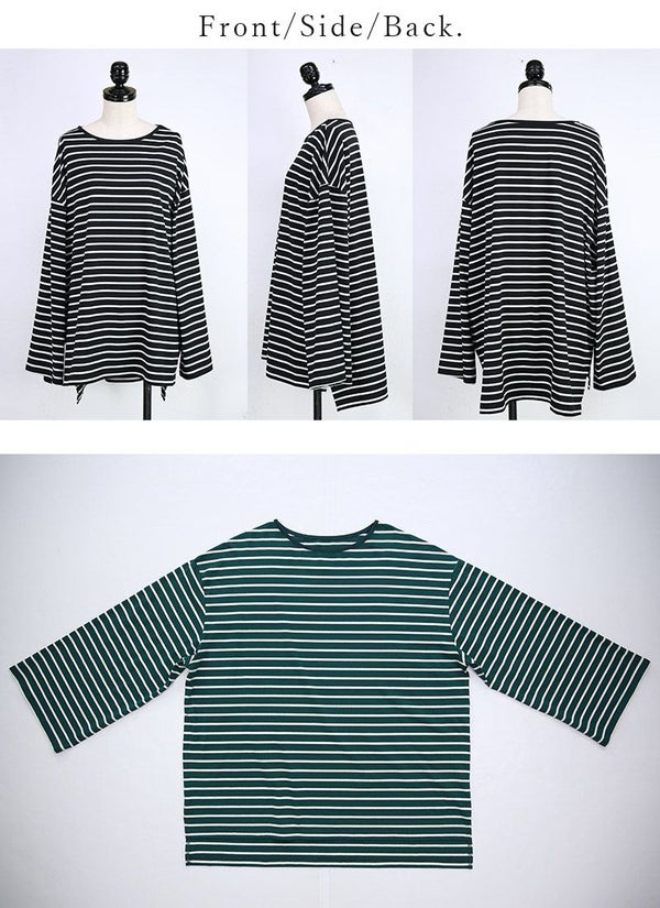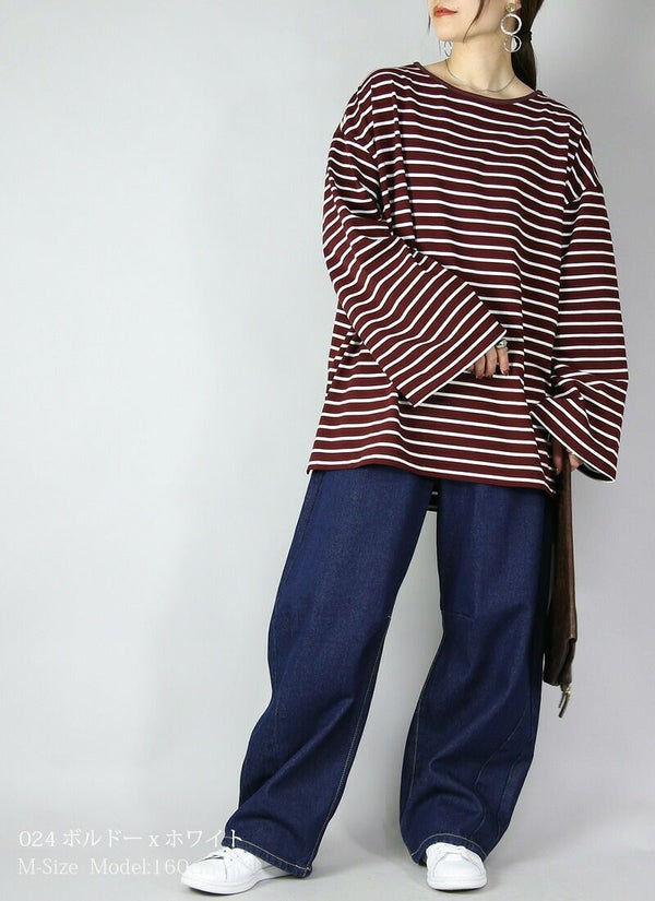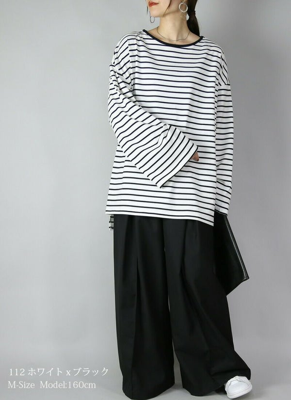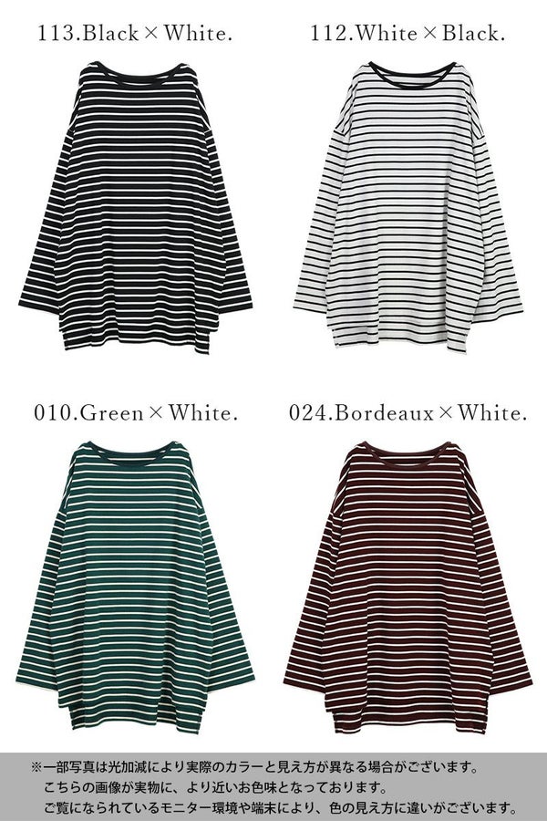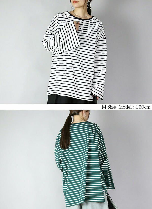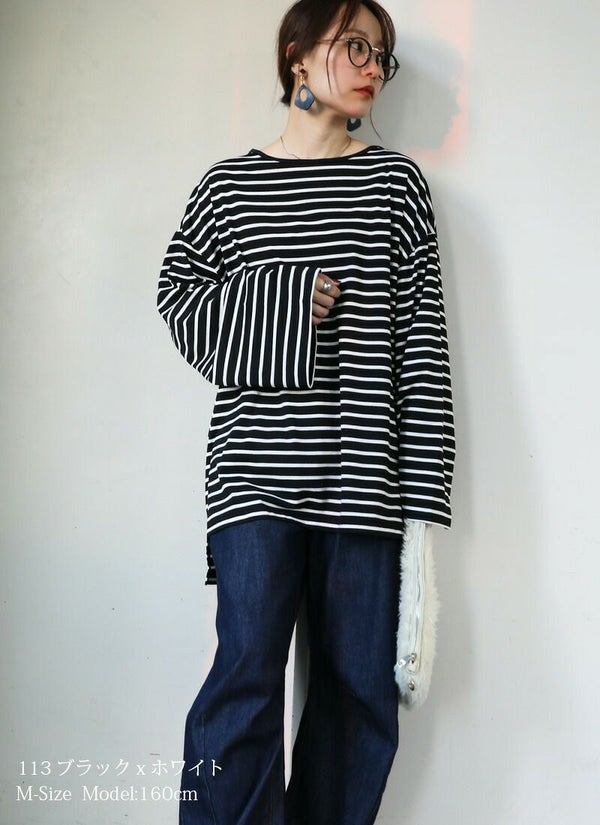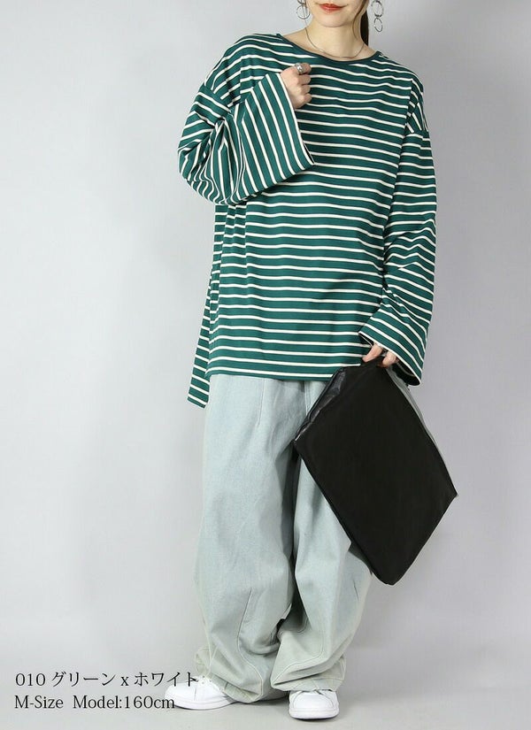 ドロップショルダー長袖ボーダービッグカットソー 【メール便対応不可】