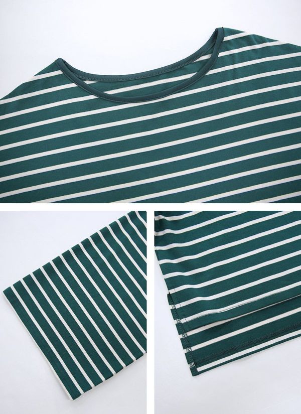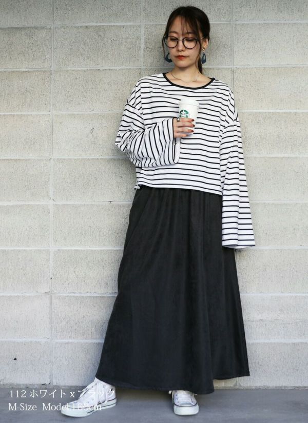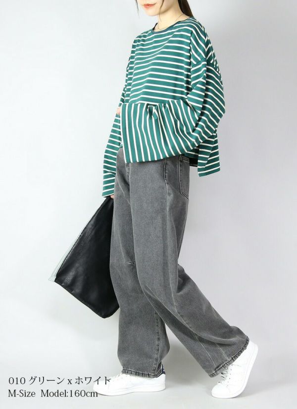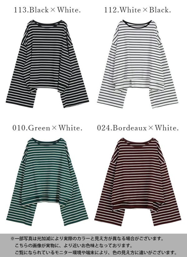 ドロップショルダー長袖ボーダーショートカットソー 【メール便対応可】