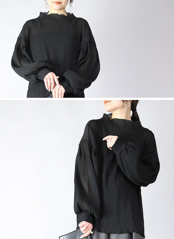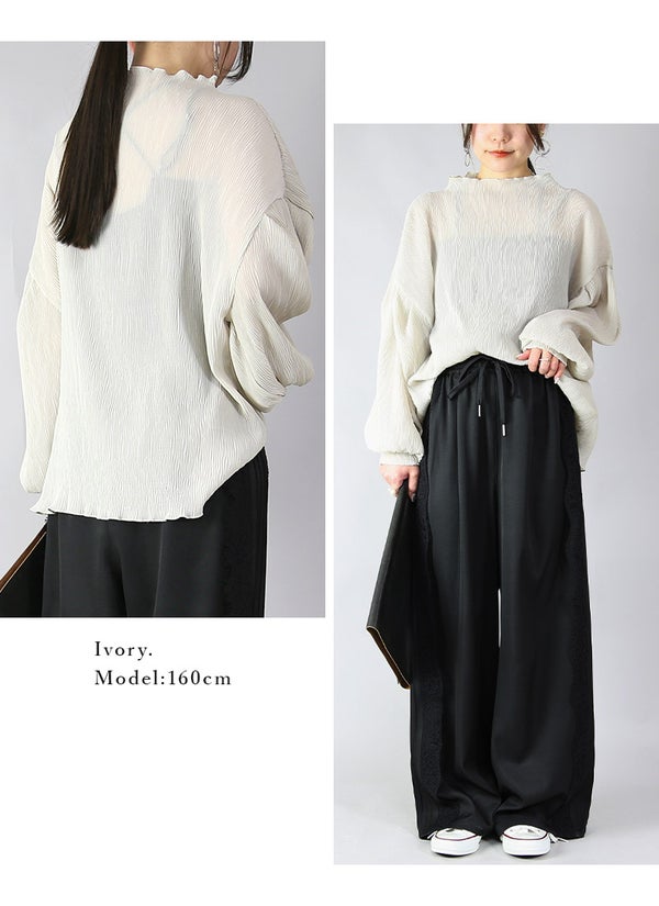 フェイクレイヤードくしゅくしゅシャーリングカットソー M L LL 3L 4L 【メール便対応可】