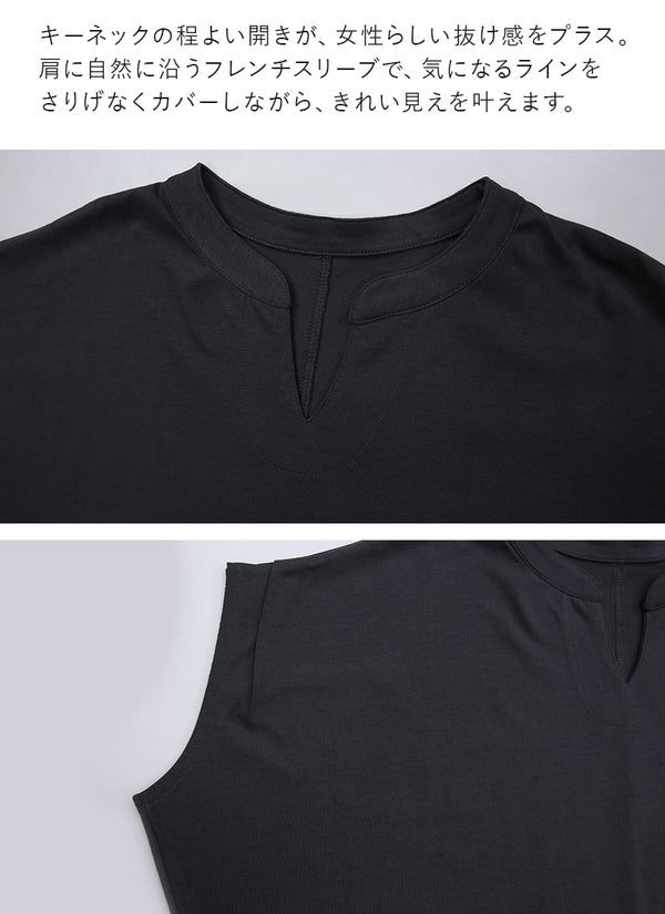 キーネックで首元に抜け感をプラス。フレンチスリーブが華奢見えを叶える大人の上品Tシャツ。