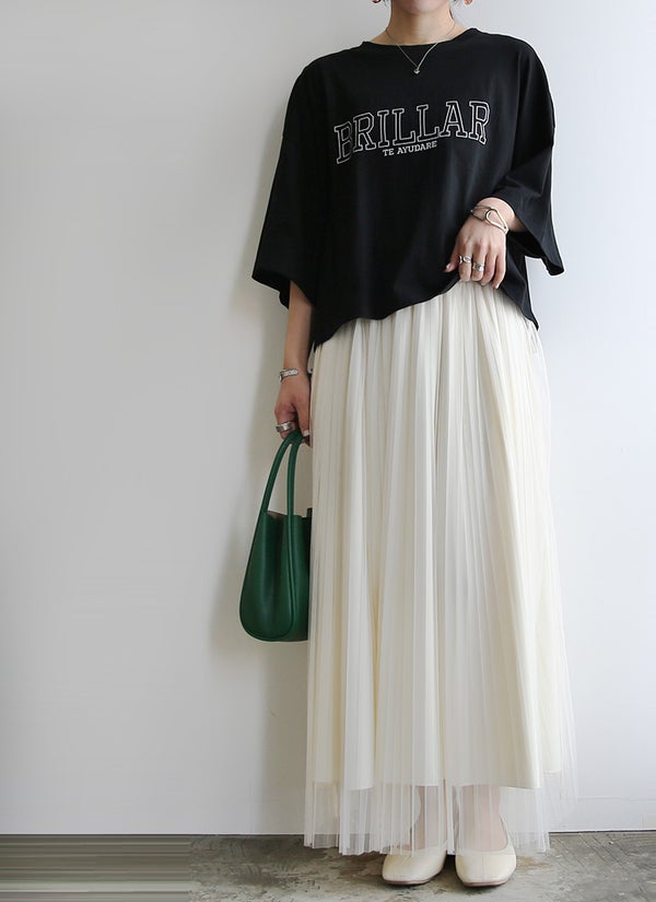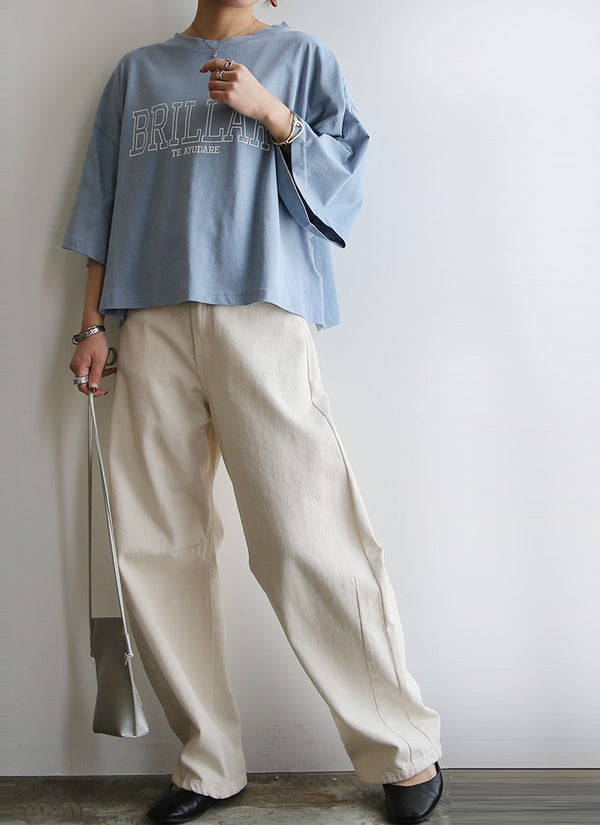 ロゴ×ワイドスリーブで旬バランス。ロゴが映える、大人のゆるカジュアルTシャツ。
