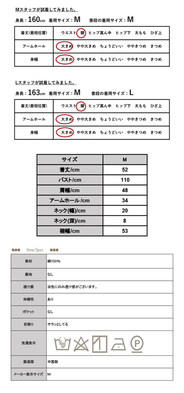 ■綿100%生地の商品は、洗濯時に多少縮む場合がございます。