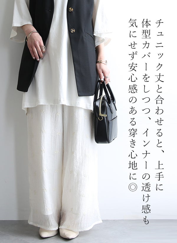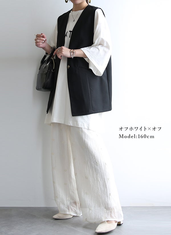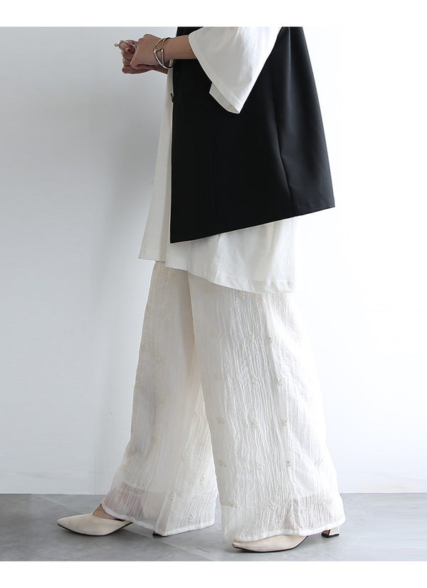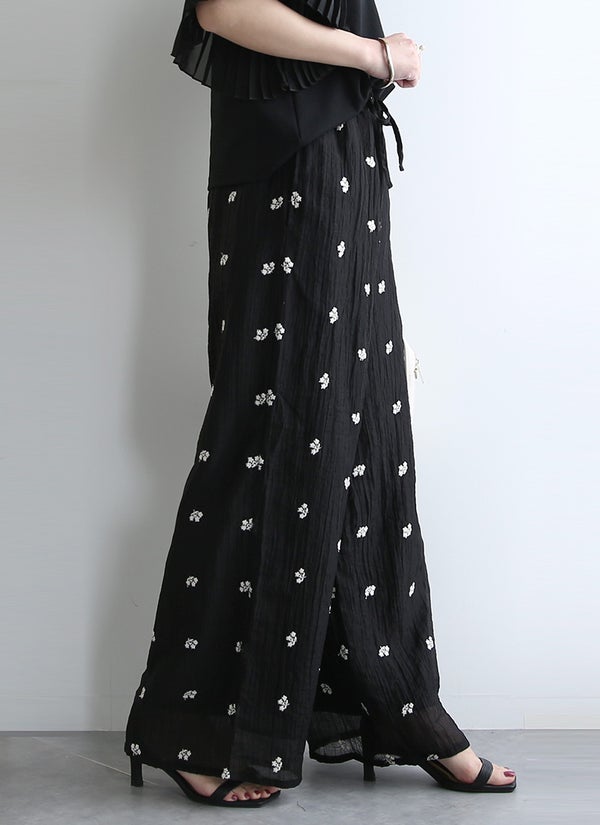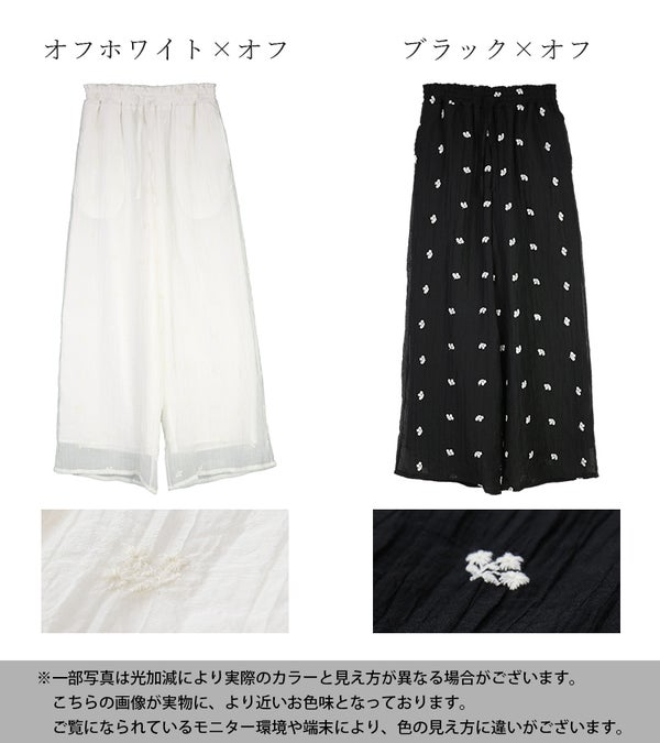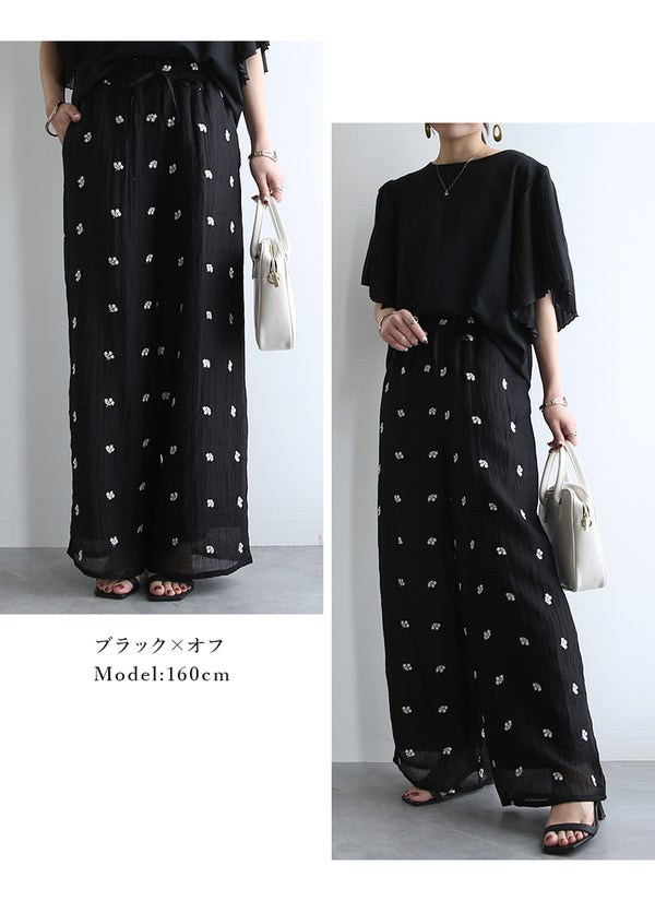 パンツ レディース きれいめ 花柄 刺繍パンツ ストレート 刺繍 小花 ワイドパンツ おしゃれ シワになりにくい 透け感 シアー 涼感 大人可愛い 上品 着映え ウエストゴム 楽ちん ラフ 軽やか ゆったり イージーケア お手入れ簡単 ブラック ホワイト 黒 白 新作 NEW ニュー カジュアル かじゅある ナチュラル なちゅらる 女性 綺麗 綺麗目 綺麗め きれいめ キレイメ キレイめ きれい キレイ 可愛い かわいい カワイイ カッコいい かっこいい 格好良い カッコイイ 大人 オトナ おとな オトナカワイイ おとなかわいい 大人可愛い 大人女子 おとなじょし オトナジョシ お洒落 おしゃれ オシャレ トレンド 旬 とれんど 流行 こなれ感 こなれ 高見え 上質 上品 シンプル ニュアンス ラクチン らくちん 楽ちん 楽 動きやすい ゆったり ゆる ゆったりサイズ ゆるカジ ゆるい ゆるファッション 体型カバー プラスサイズ 大きいサイズ ビッグ ビック big ビックシルエット ビッグシルエット ビックサイズ ビッグサイズ オーバーサイズ オーバー フリーサイズ フリー S M L LL 2L XL 3L XXL LLL 着痩せ 着回し 華奢見せ 華奢見え ベーシック プチプラ ファッション レディースファッション レディファ カジュアルコーデ 大人コーデ オトナコーデ 大人カジュアルコーデ きれいめコーデ きれいめカジュアルコーデ オフィスカジュアルコーデ オフィスカジュアル オフィス テレワーク リモートワーク リモート オンライン飲み会 飲み会 打ち上げ ご飯会 ランチ おうち時間 お家時間 デート お出かけ フェス リゾート ビーチ 海 旅行 飛行機 パーティー パーティ 韓国ファッション 韓国コーデ 韓国風 韓国 母の日 母のひ プレゼント ギフト 贈り物 クリスマス 誕生日 春 夏 秋 冬 春夏 秋冬 andit_ and it_ andit ANDIT_ ANDIT あんどいっと アンドイット 20 30 40 50 60 20代 30代 40代 50代 60代
