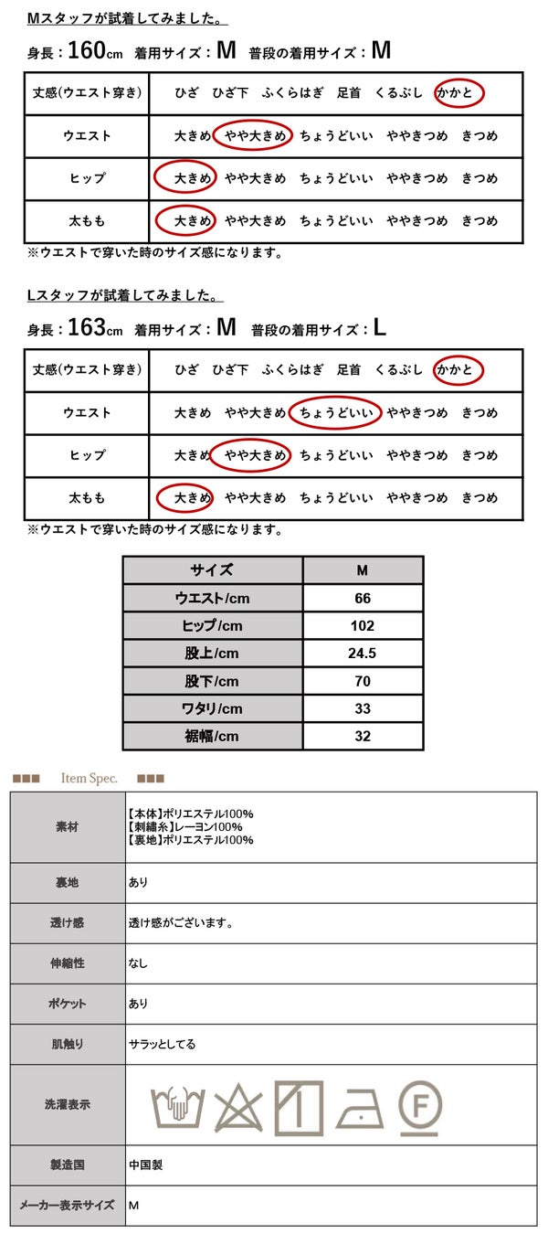 プチフラワー刺繍ワイドパンツ M 【メール便対応可】