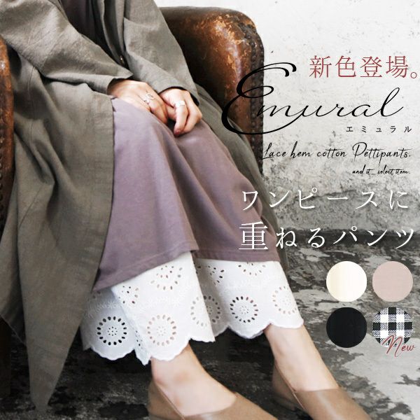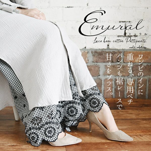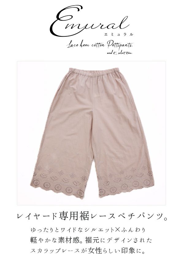 エミュラル emural 裾レースコットンペチパンツ【M-L】 【メール便対応可】