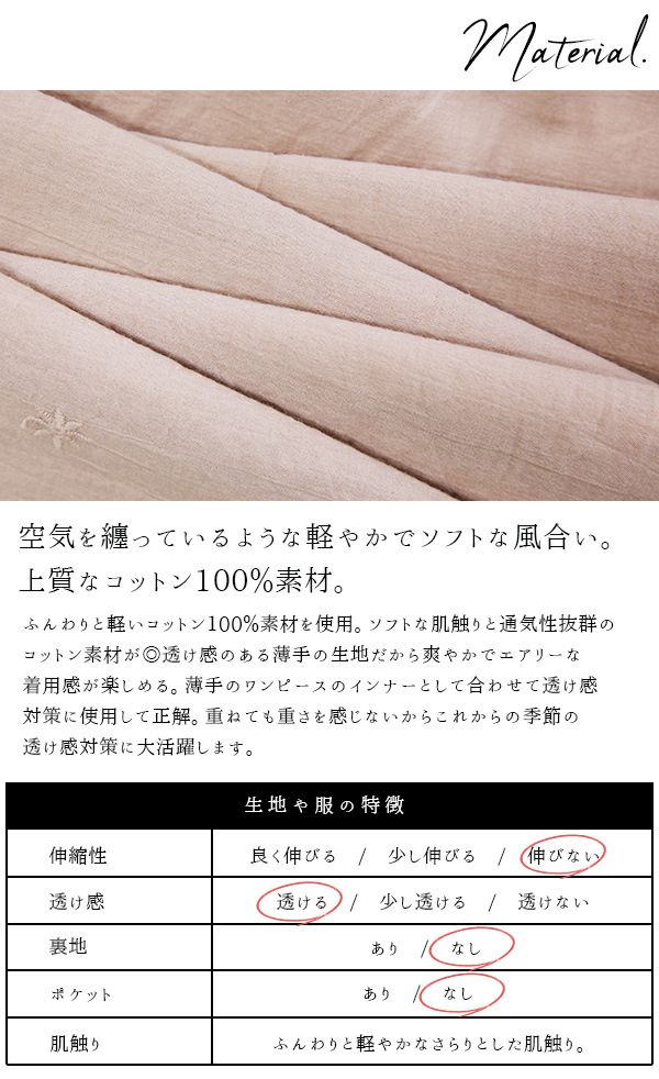 ・綿100%生地の商品は、洗濯時に多少縮む場合がございます。