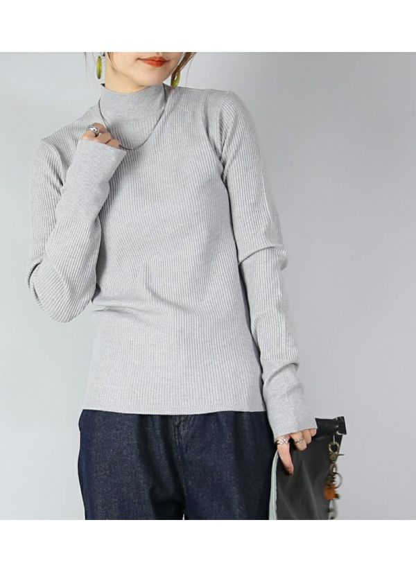柔らかく心地良い肌触り♪シンプルで着回し力抜群のシンプルリブニット。