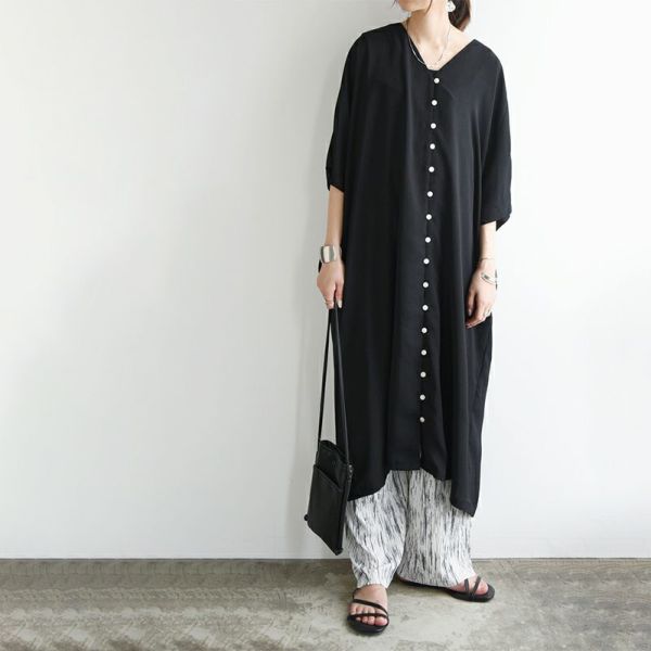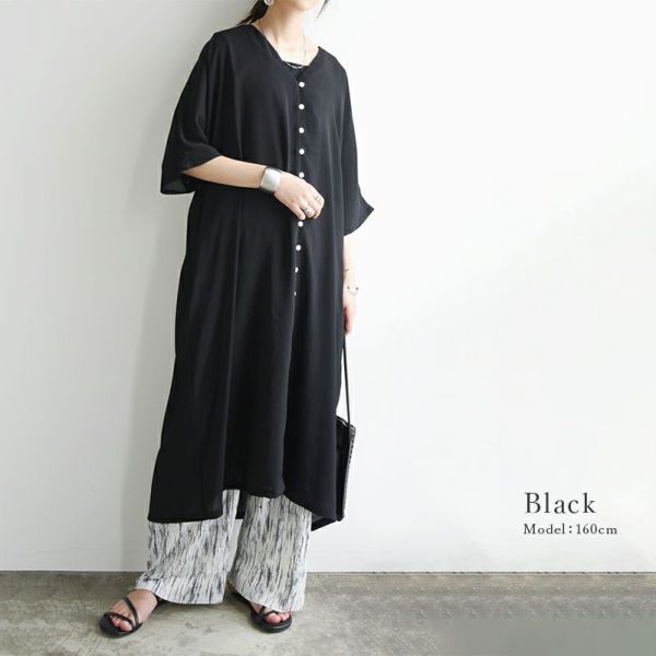 ワンピース レディース 春 夏 フロントボタン ボタン Vネック すっきり 半袖 五分袖 二の腕隠れる 二の腕カバー 着映え ワイド 華奢見え 抜け感 デイリー リラックス ブラック ブラウン 黒 大きいサイズ M L XL andit_ and it_ andit ANDIT_ ANDIT あんどいっと アンドイット SS 新作 NEW カジュアル ナチュラル きれいめ 大人可愛い 大人女子 お洒落 トレンド シンプル ニュアンス ゆったり 楽ちん ラフ 体型カバー ぽっちゃり プチプラ ファッション レディースファッション ママ服 20 30 40 50 20代 30代 40代 50代