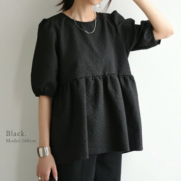 ふくれジャガードパフスリーブブラウス M L 【メール便対応可】
