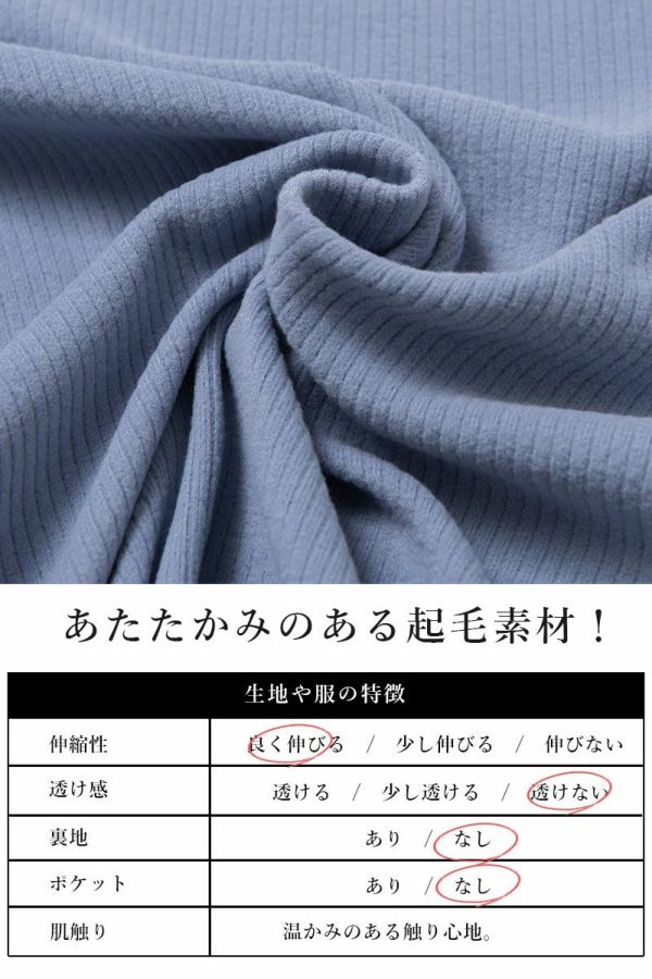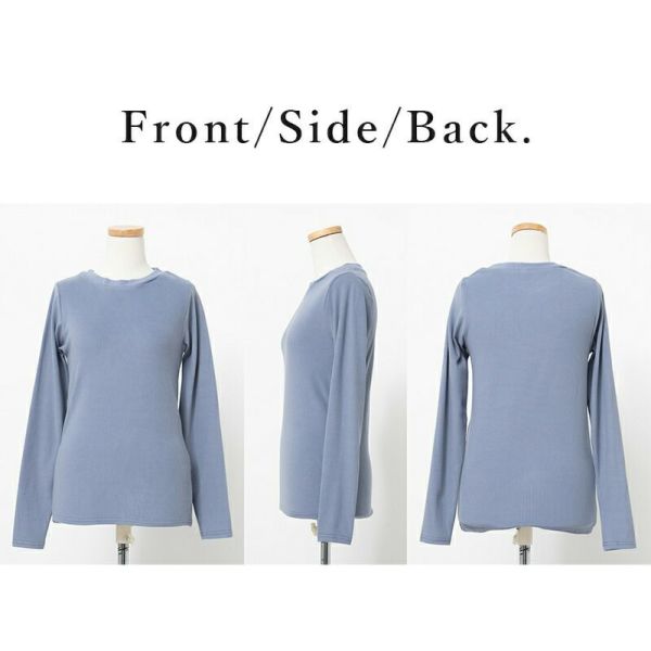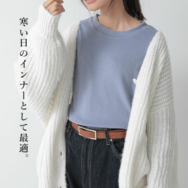 起毛リブで見た目もあったか♪重ね着としても大活躍のすっきりクルーネックデザイン。