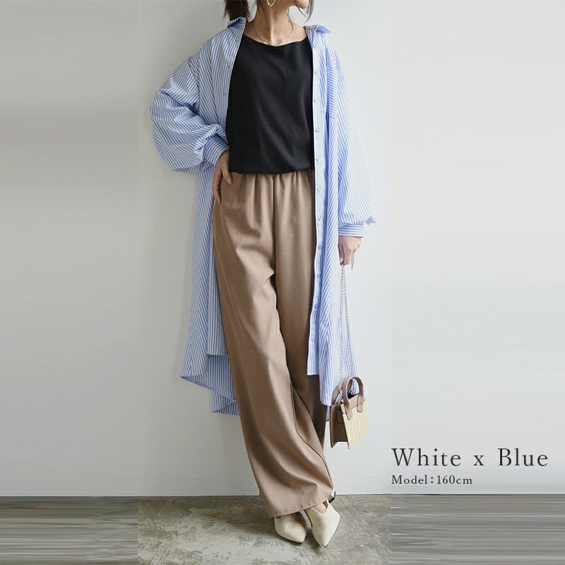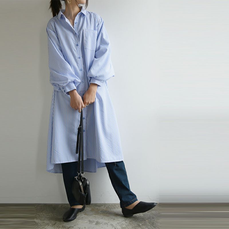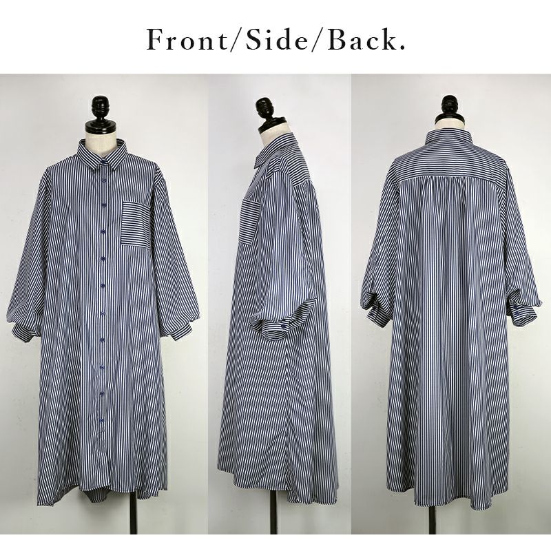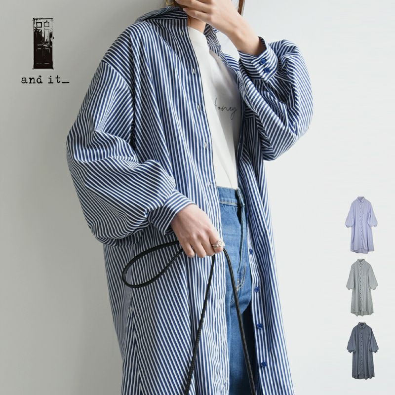 ワンピース シャツワンピ シャツワンピース ロング ロングワンピース シャツ ストライプ ストライプシャツ 柄シャツ ボリューム袖 ボリュームスリーブ ぽわん袖 Aライン ふんわりシルエット ふんわり 春夏 長袖 春服 夏服 ブルー ネイビー ホワイト 春シャツ 前開き 羽織 羽織り 重ね着 レイヤード 二の腕カバー スタイルカバー andit_ and it_ andit ANDIT_ ANDIT あんどいっと アンドイット SS 新作 NEW カジュアル ナチュラル きれいめ 大人可愛い 大人女子 お洒落 トレンド シンプル ニュアンス M Mサイズ ゆったり 楽ちん ラフ 体型カバー ぽっちゃり プチプラ ファッション レディースファッション ママ服 20 30 40 50 20代 30代 40代 50代