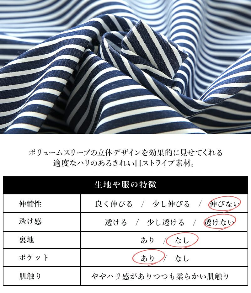 ストライプブロードボリュームスリーブシャツワンピース M 【メール便対応可】