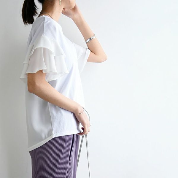 袖のフリルと後ろ姿も可愛い♪シンプルで上品なコーデが仕上がるカットソー。