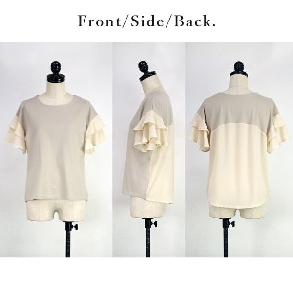 トップス カットソー レディース 春夏 異素材 切替 ティアード プルオーバー 透け感 涼感 フリル ふんわり 大人可愛い 上品 シンプル 無地 オフホワイト グレージュ ブラック 白 黒 オフィスカジュアル オフィス 通勤 会社 M Mサイズ andit_ and it_ andit ANDIT_ ANDIT あんどいっと アンドイット SS 新作 NEW カジュアル ナチュラル きれいめ 大人女子 お洒落 トレンド シンプル ニュアンス ゆったり 楽ちん ラフ 体型カバー ぽっちゃり プチプラ ファッション レディースファッション ママ服 20 30 40 50 20代 30代 40代 50代