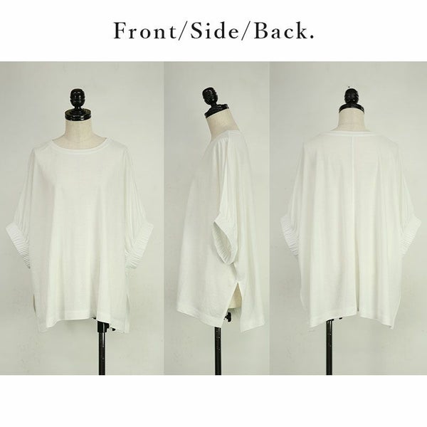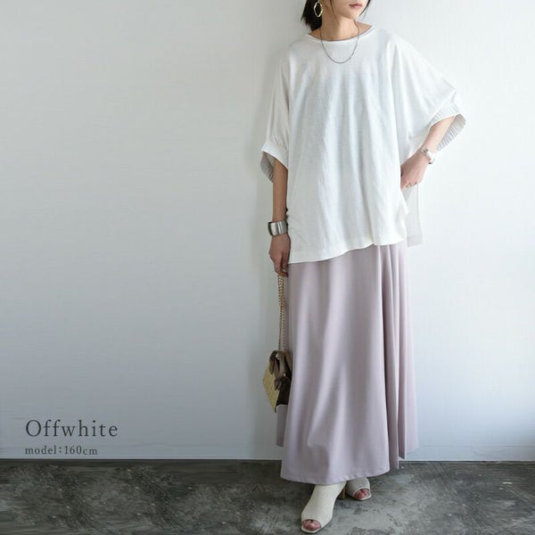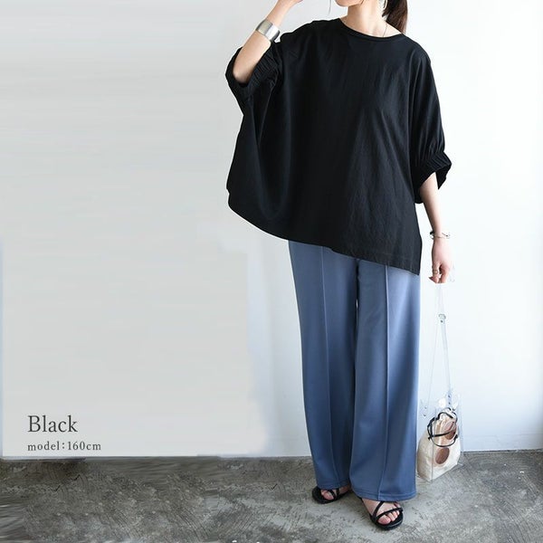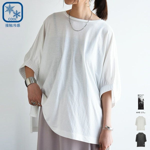 トップス カットソー レディース 春夏 半袖 五分袖 5分袖 袖口 ギャザー プルオーバーTシャツ ティーシャツ 接触冷感 ひんやり 涼しい 涼感 冷感素材 ひんやり素材 二の腕隠れる お尻が隠れる 二の腕カバー ヒップカバー ワイド スリット 抜け感 袖ゴム ゴム シンプル 無地 カジュアル オフホワイト ブラック 白 黒 M Mサイズ エム えむ andit_ and it_ andit ANDIT_ ANDIT あんどいっと アンドイット SS 新作 NEW カジュアル ナチュラル きれいめ 大人可愛い 大人女子 お洒落 トレンド シンプル ニュアンス ゆったり 楽ちん ラフ 体型カバー ぽっちゃり プチプラ ファッション レディースファッション ママ服 20 30 40 50 20代 30代 40代 50代