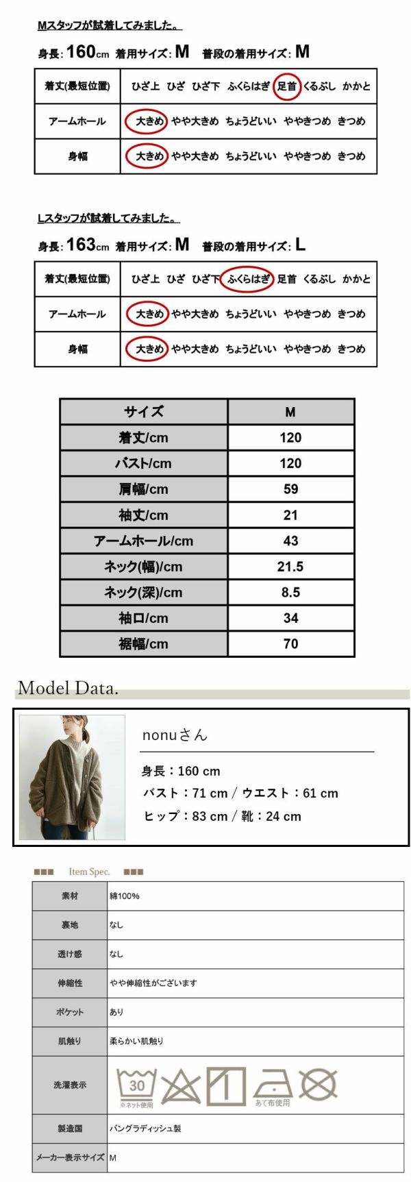 ・綿100%生地の商品は、洗濯時に多少縮む場合がございます。